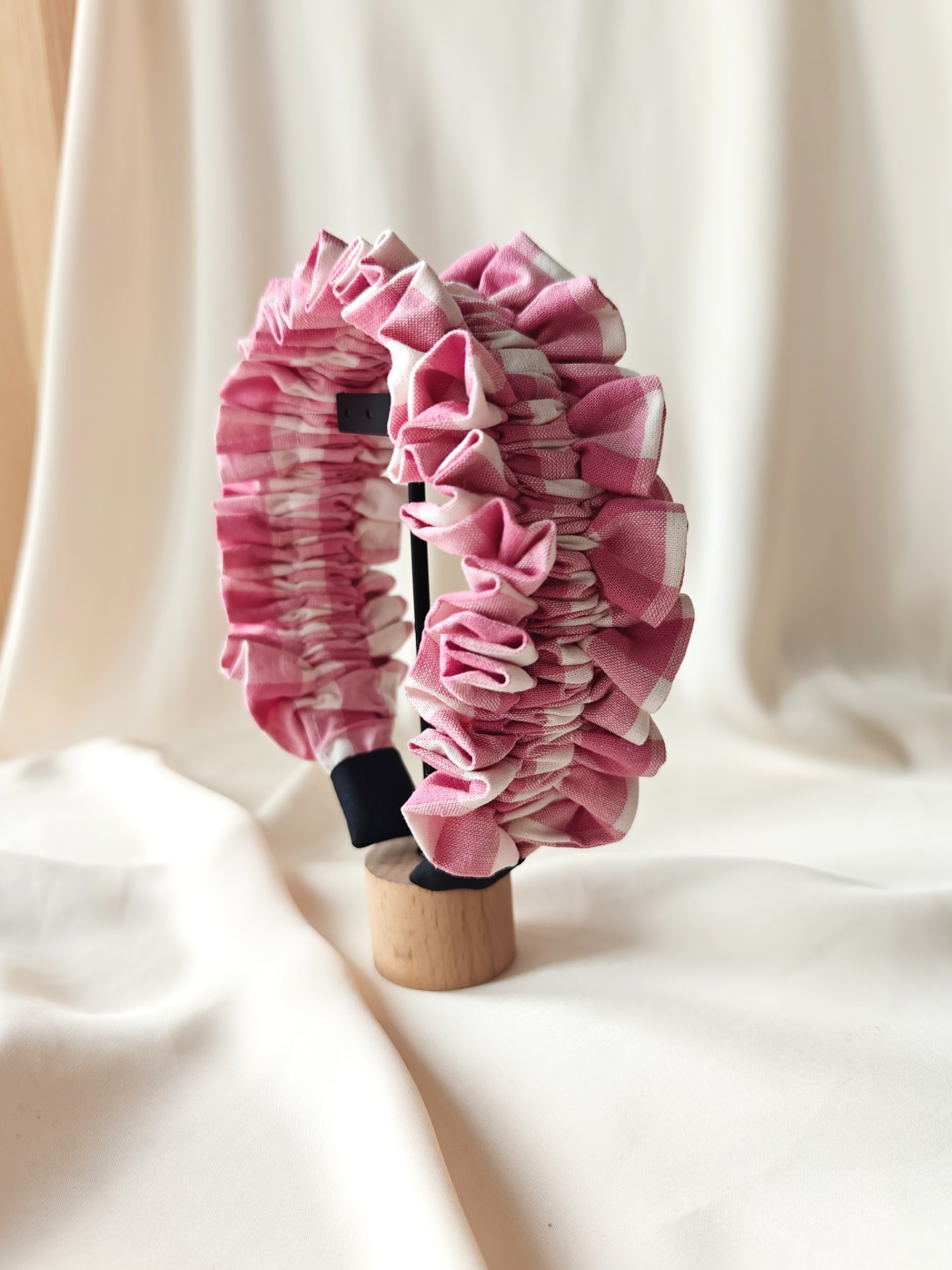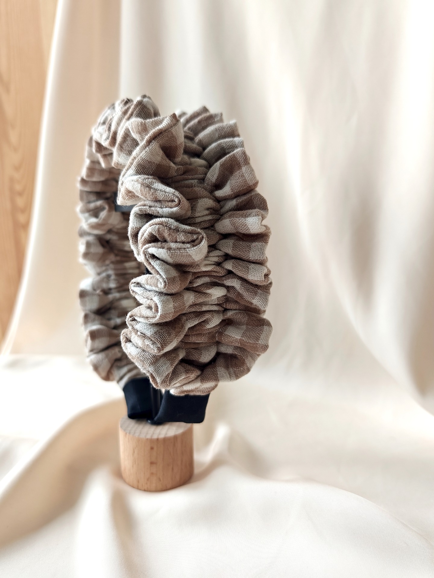 Ylellisestä, kauniisti laskostuvasta kankaasta käsityönä valmistettu hiuspanta kääntää takuulla katseita. Ja mikä tärkeintä: usean testikäyttäjän päässä panta ei ole päivän aikana puristanut.