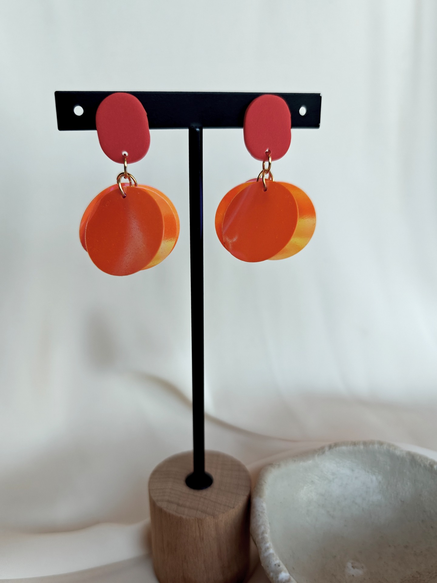 Polymeerisavesta valmistetut korvakorut tappikiinnityksellä. Ihon kanssa kosketuksiin tulevat koruosat nikkelivapaata kirurginterästä. Toimitetaan taustapahviin kiinnitettynä.