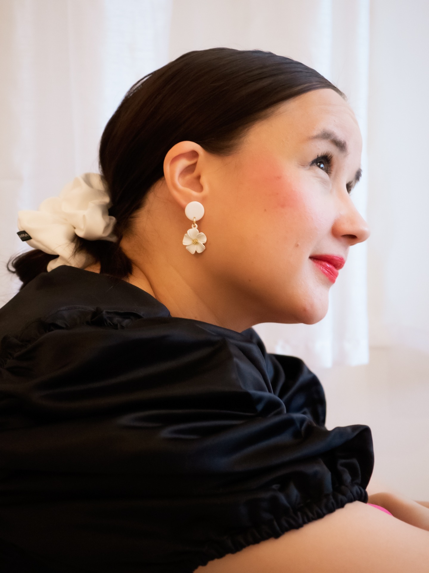 Polymeerisavesta valmistetut korvakorut tappikiinnityksellä. Lävistävät koruosat nikkelivapaata kirurginterästä.
