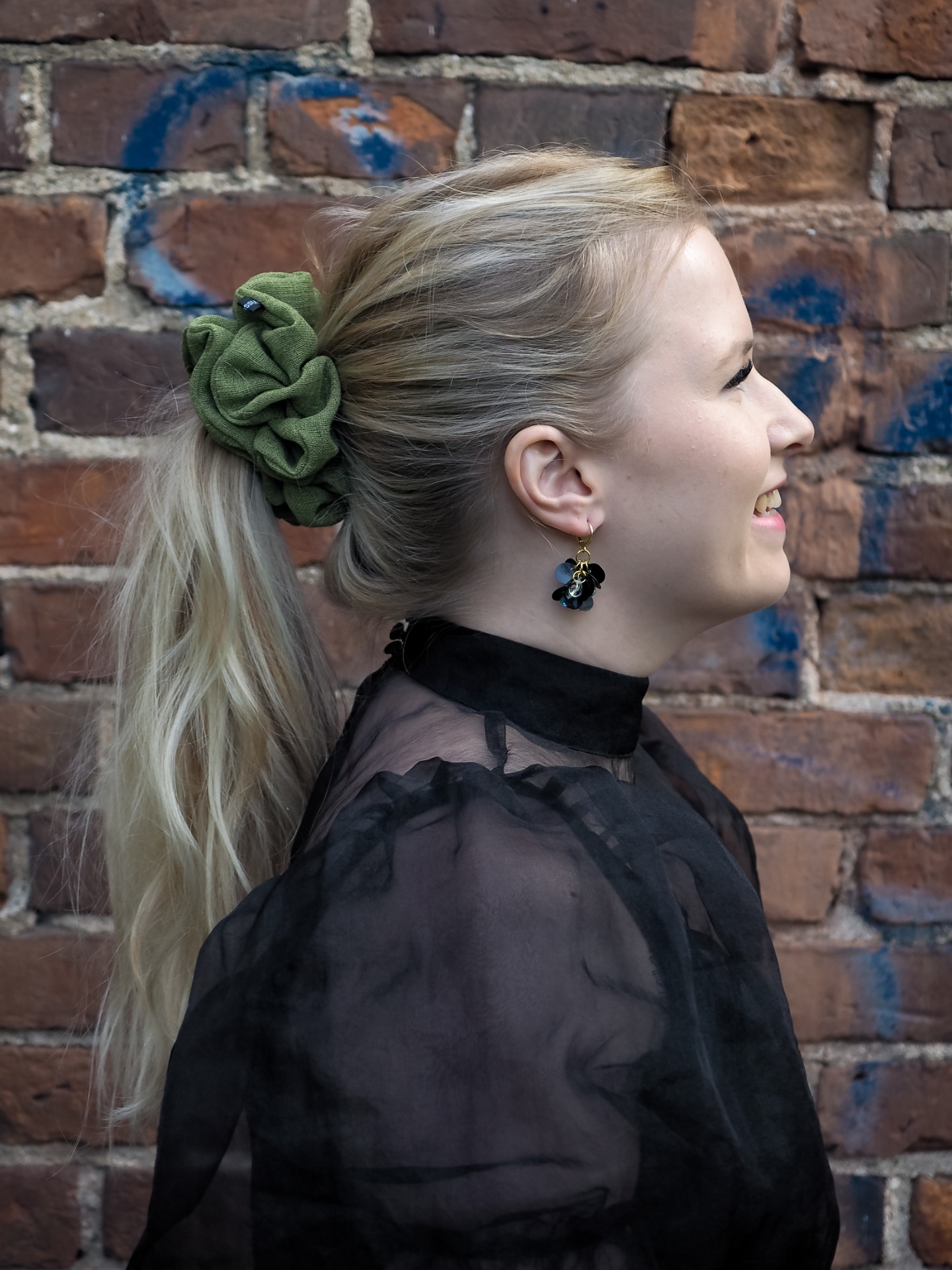 Tämä malli toimitetaan vissibyn korurasiaan pakattuna. Saatavilla myös hopeanvärisillä koruosilla.