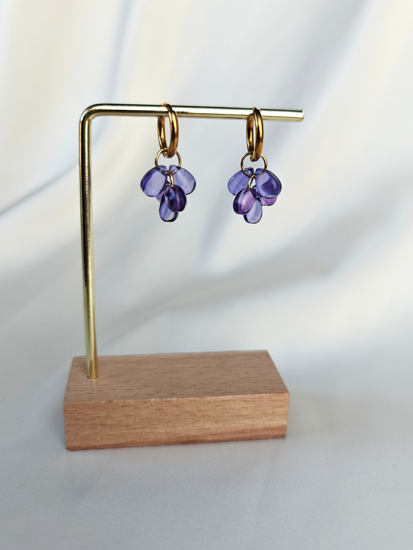 Lävistävä korunosa nikkelivapaata ruostumatonta terästä (kirurginterästä). Riipuksen helmet lasia.