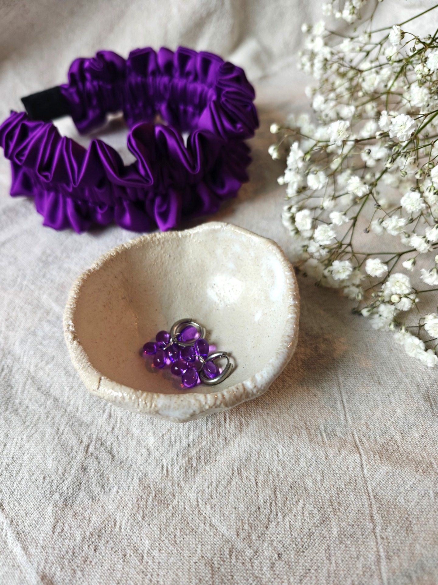 Lävistävä korunosa nikkelivapaata ruostumatonta terästä (kirurginterästä). Riipuksen helmet lasia.