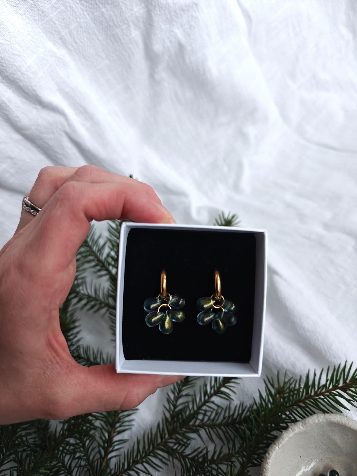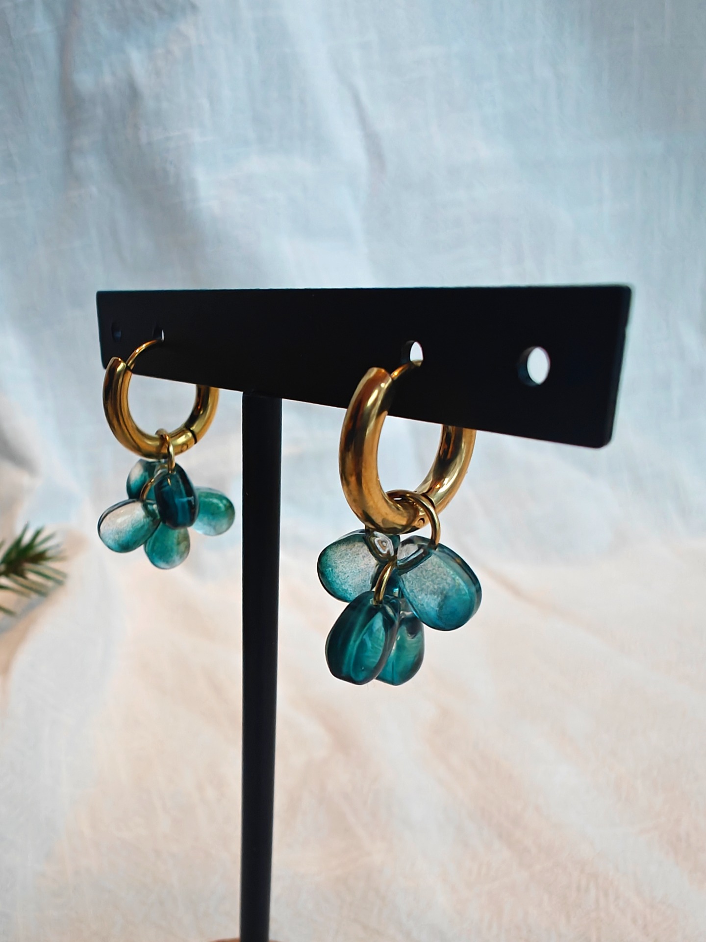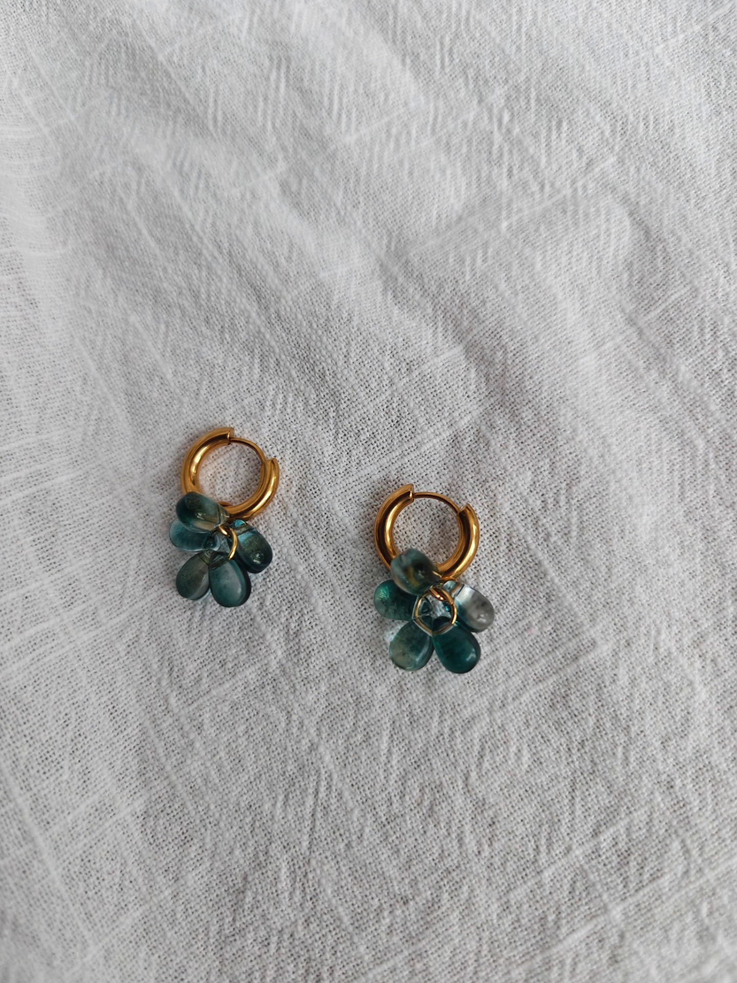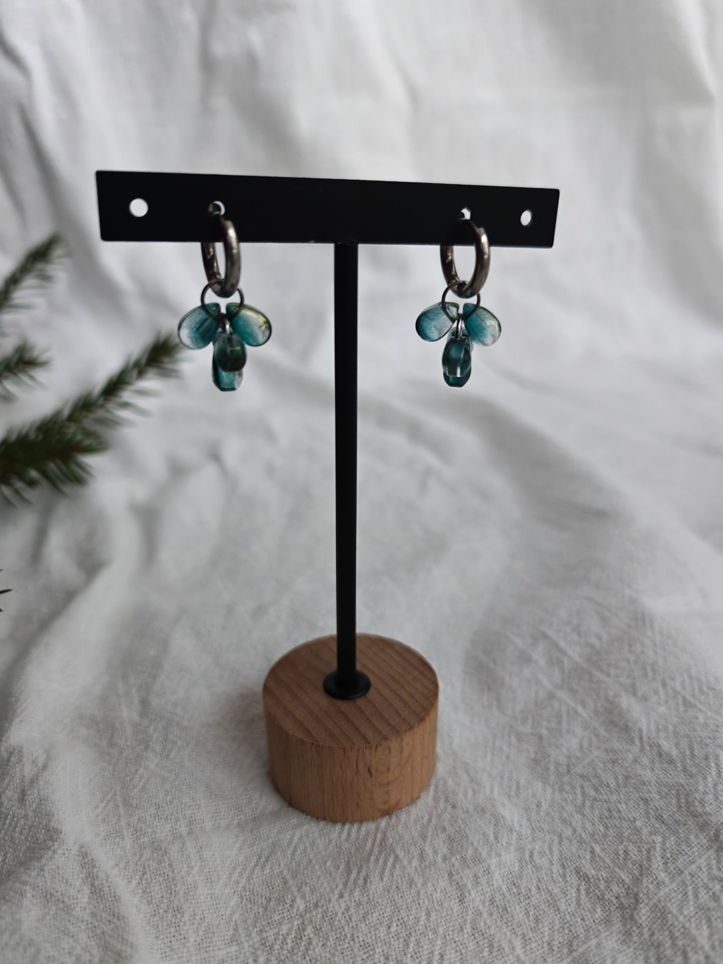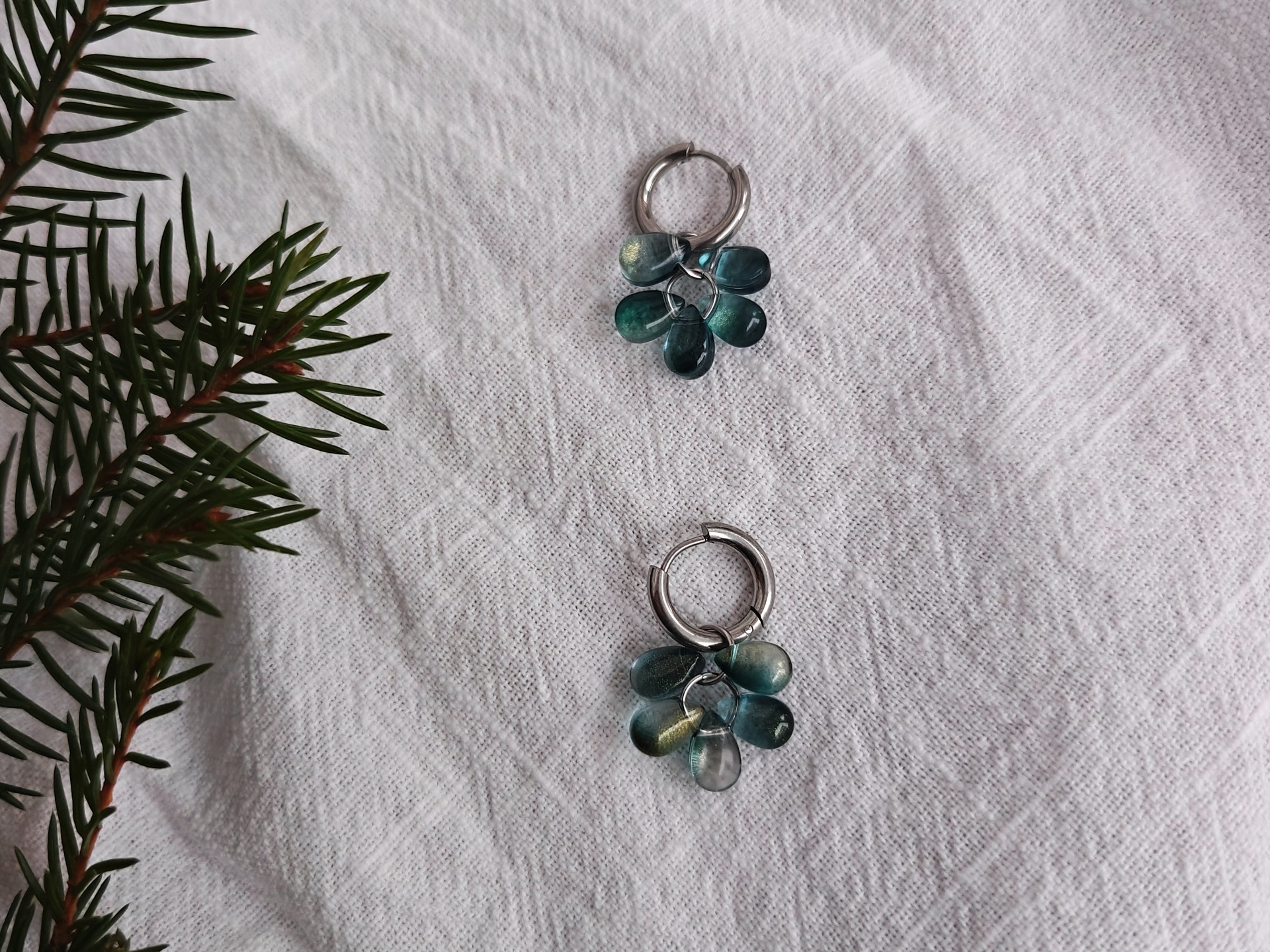 Lävistävä korunosa nikkelivapaata ruostumatonta terästä (kirurginterästä). Riipuksen helmet lasia.