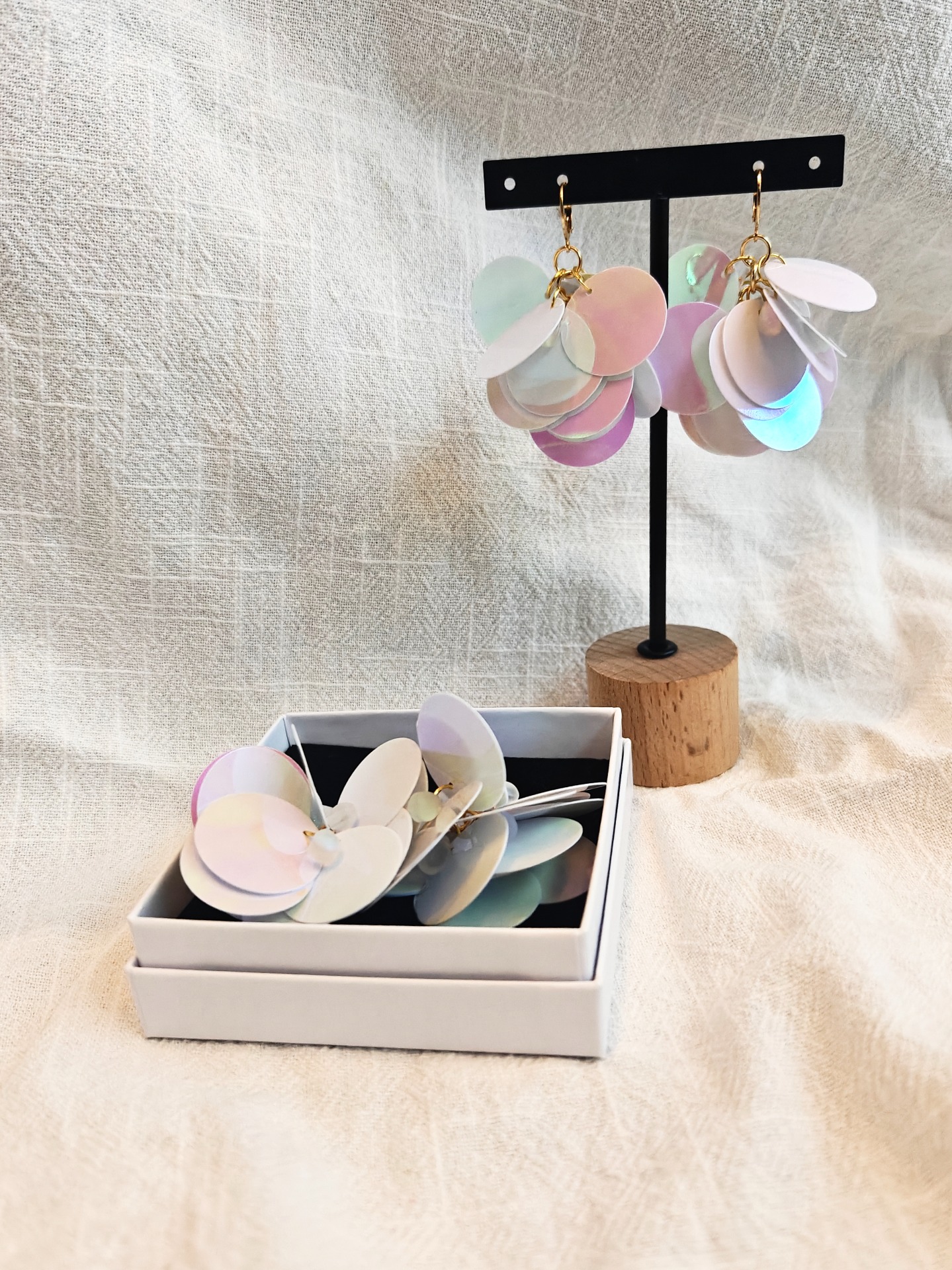 Tämä malli toimitetaan vissibyn korurasiaan pakattuna. Ihanan runsaat ja näyttävät, mutta silti superkevyet korvissa!