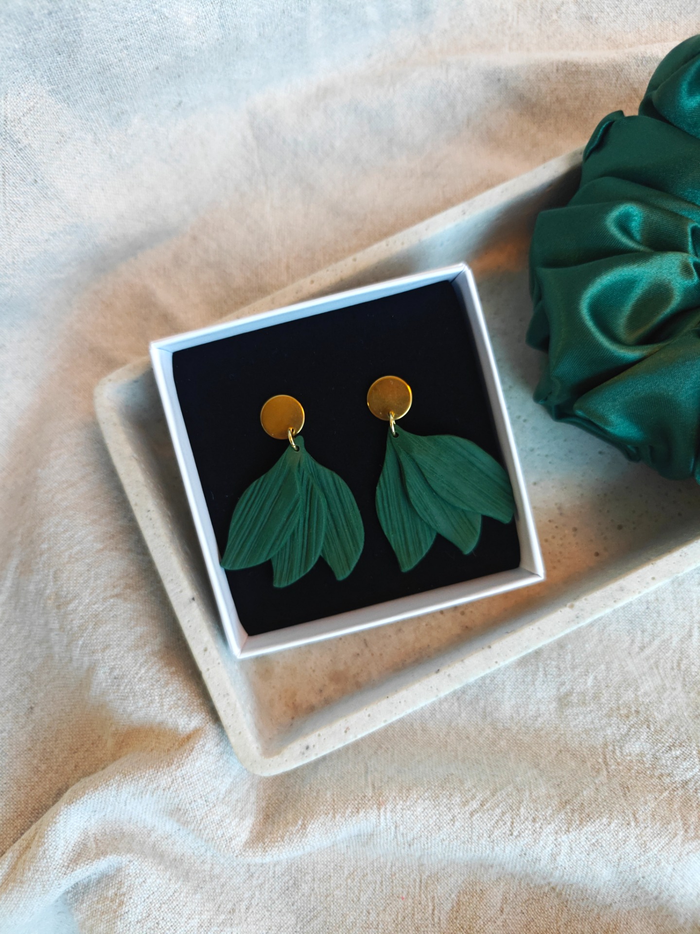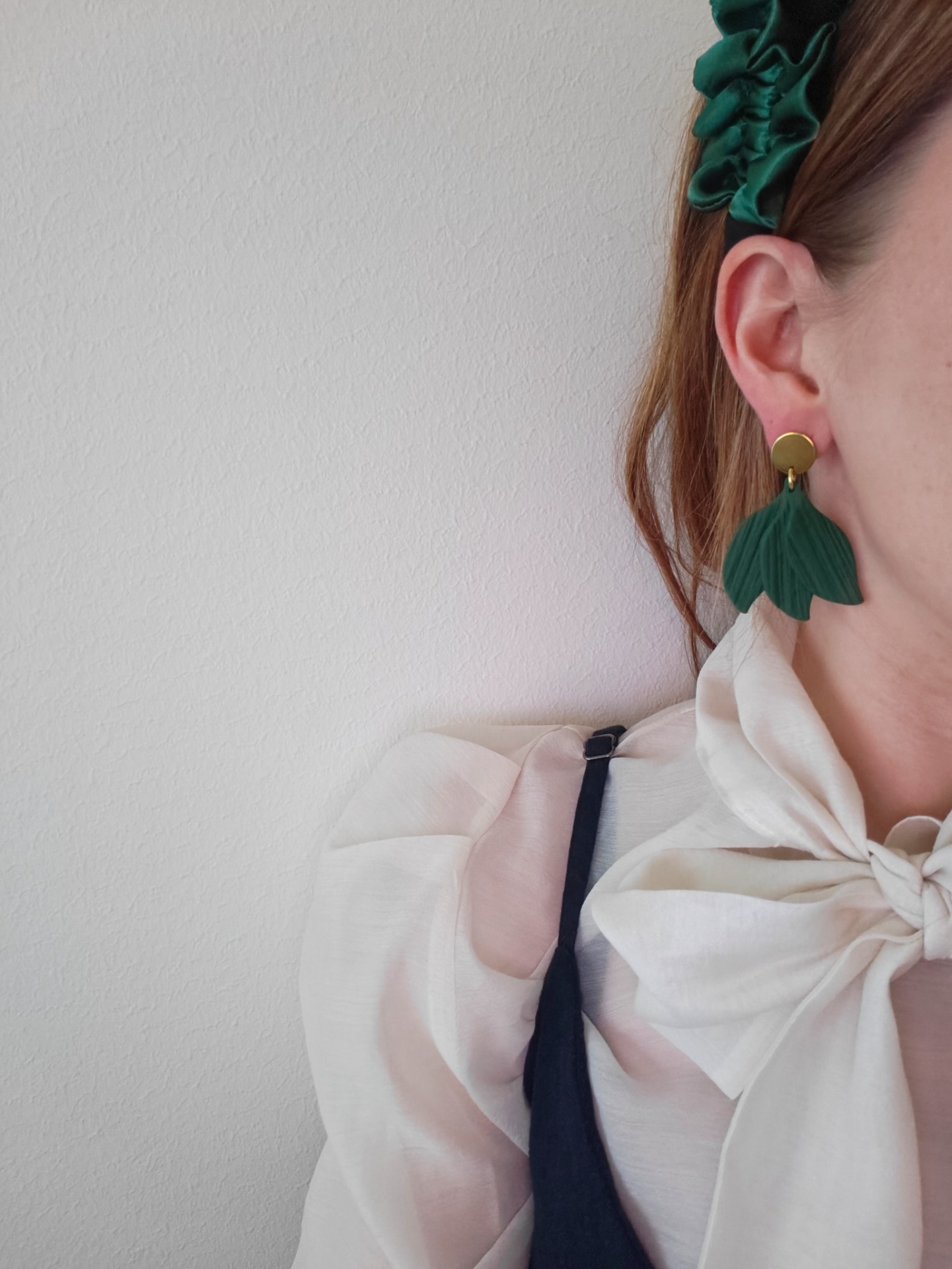 Polymeerisavesta käsityönä valmistetut korvakorut tappikiinnityksellä. Ihon kanssa kosketuksiin tulevat koruosat nikkelivapaata kirurginterästä.