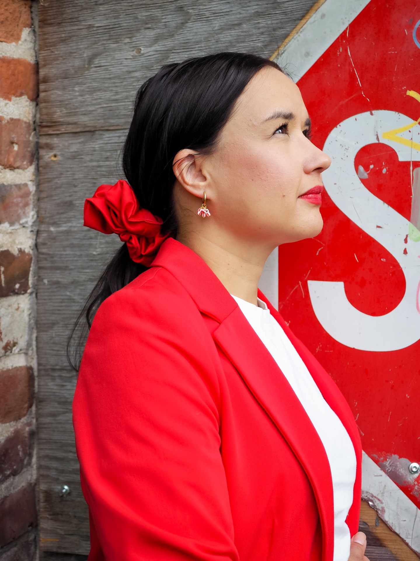 Lävistävä korunosa nikkelivapaata ruostumatonta terästä (kirurginterästä). Riipuksen helmet muovia.