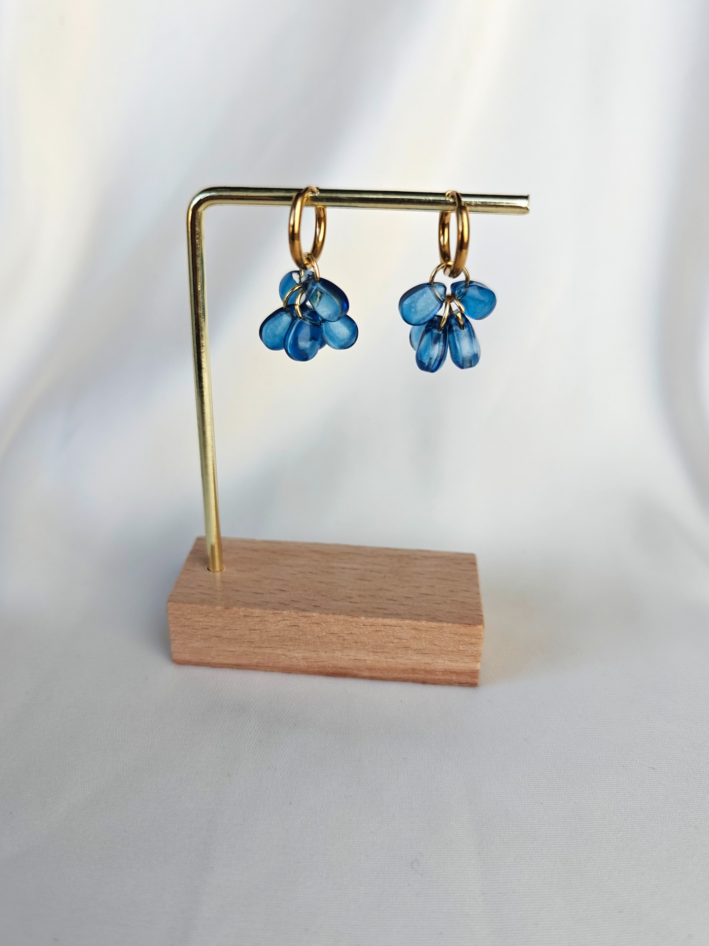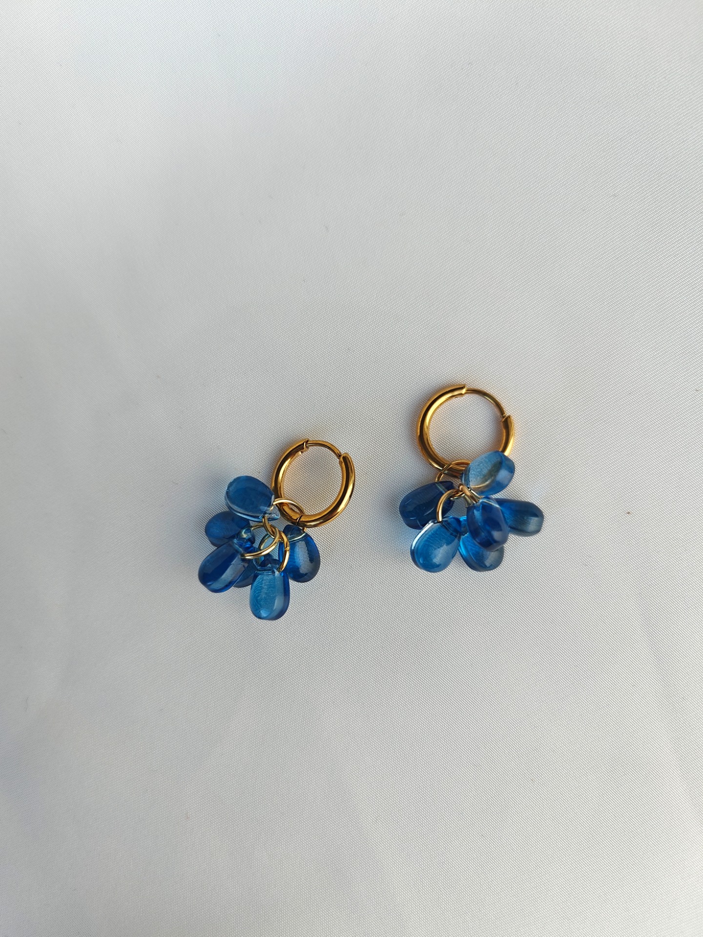 Lävistävä korunosa nikkelivapaata ruostumatonta terästä (kirurginterästä). Riipuksen helmet lasia.