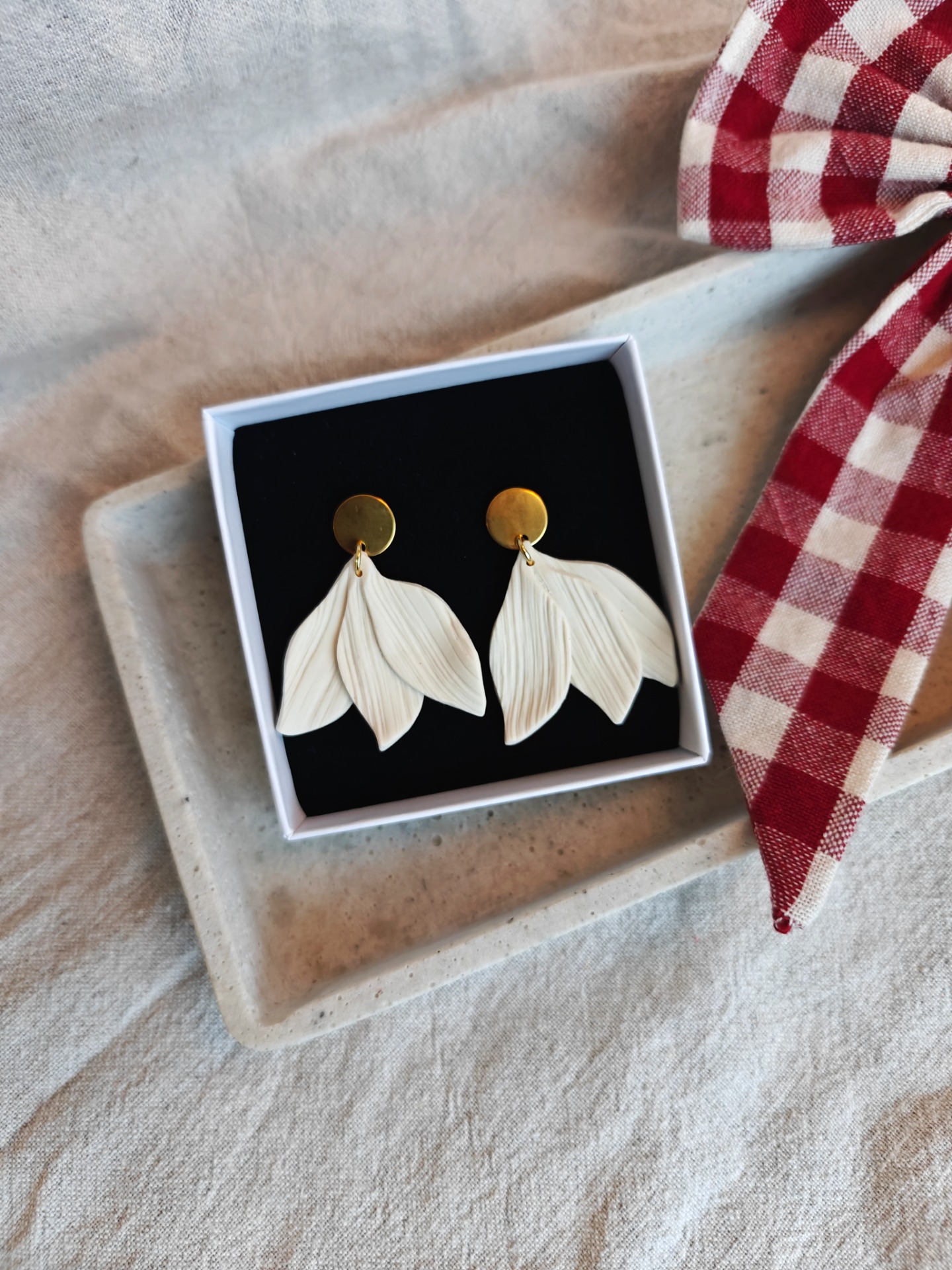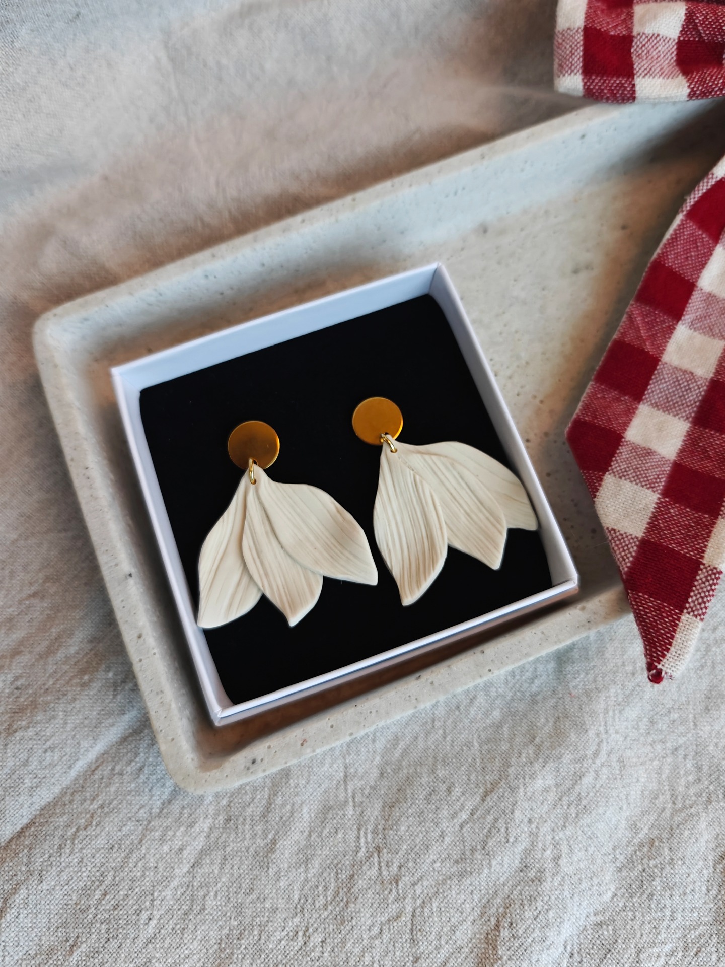 Polymeerisavesta käsityönä valmistetut korvakorut tappikiinnityksellä. Ihon kanssa kosketuksiin tulevat koruosat nikkelivapaata kirurginterästä.