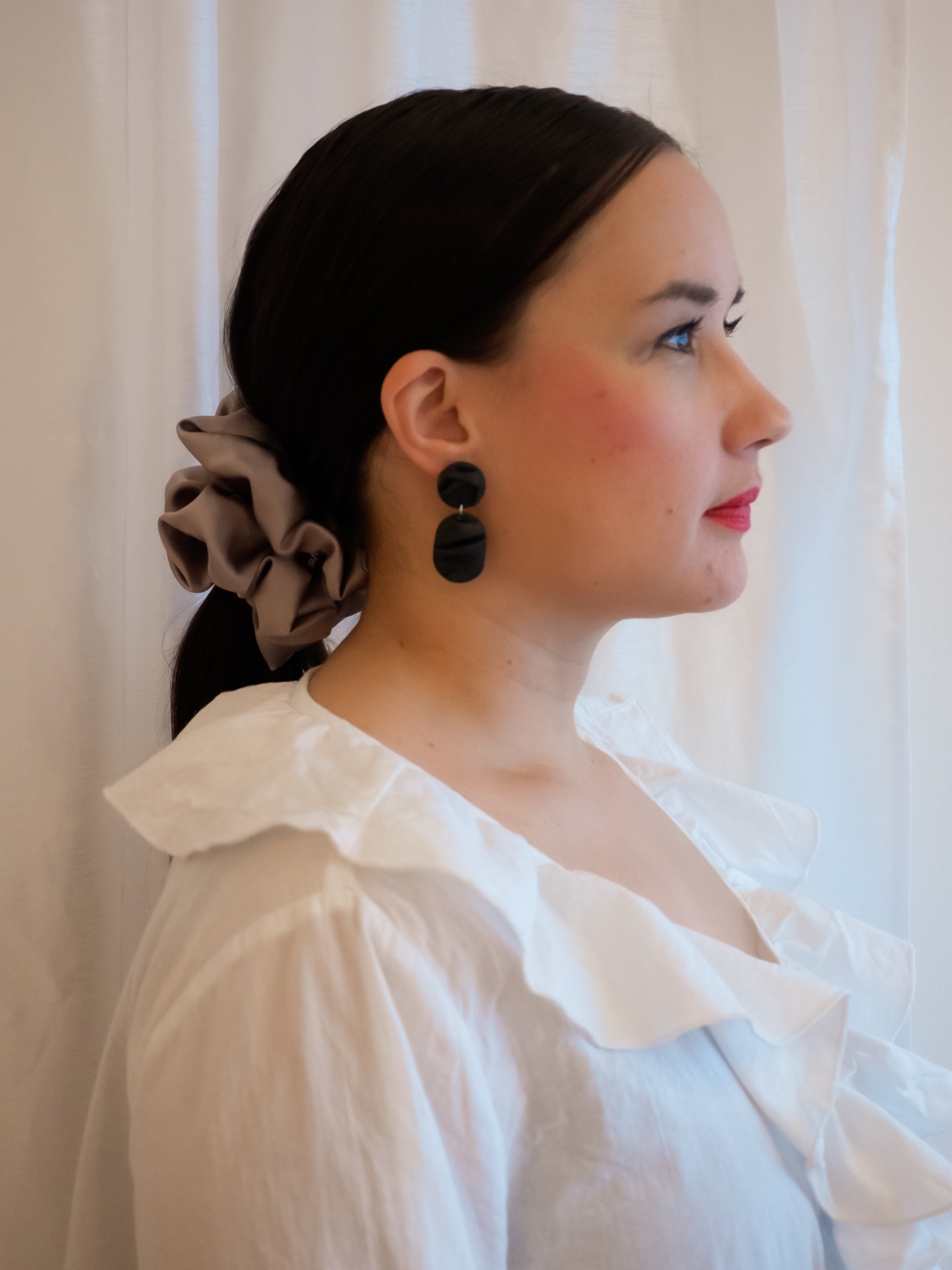Polymeerisavesta valmistetut korvakorut tappikiinnityksellä. Ihon kanssa kosketuksiin tulevat koruosat nikkelivapaata kirurginterästä.