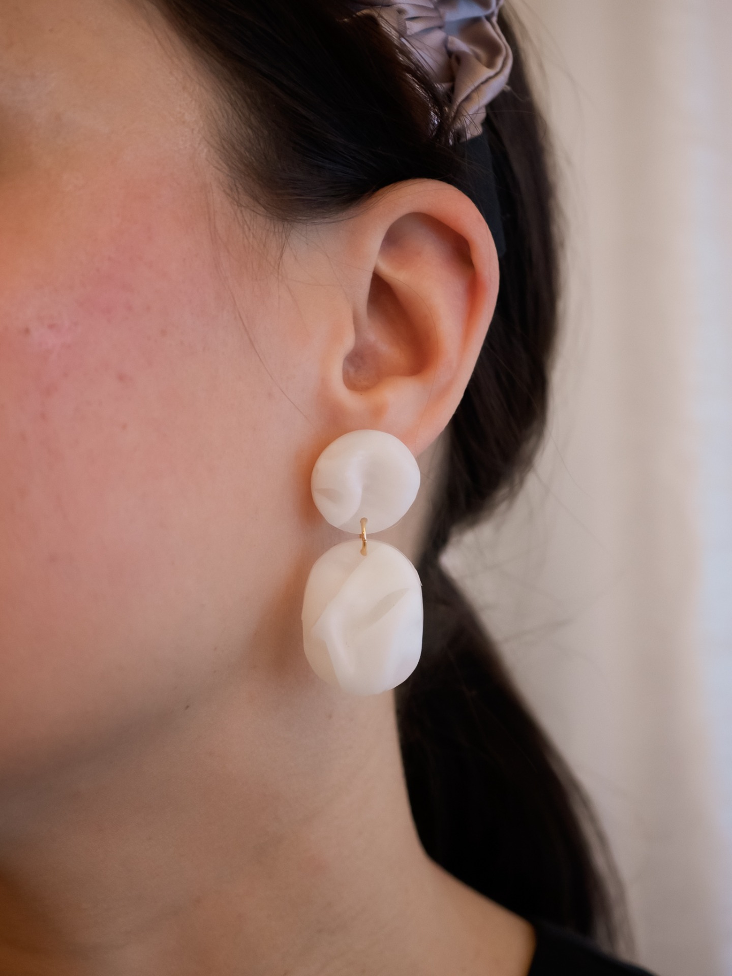 Polymeerisavesta valmistetut korvakorut tappikiinnityksellä. Ihon kanssa kosketuksiin tulevat koruosat nikkelivapaata kirurginterästä.