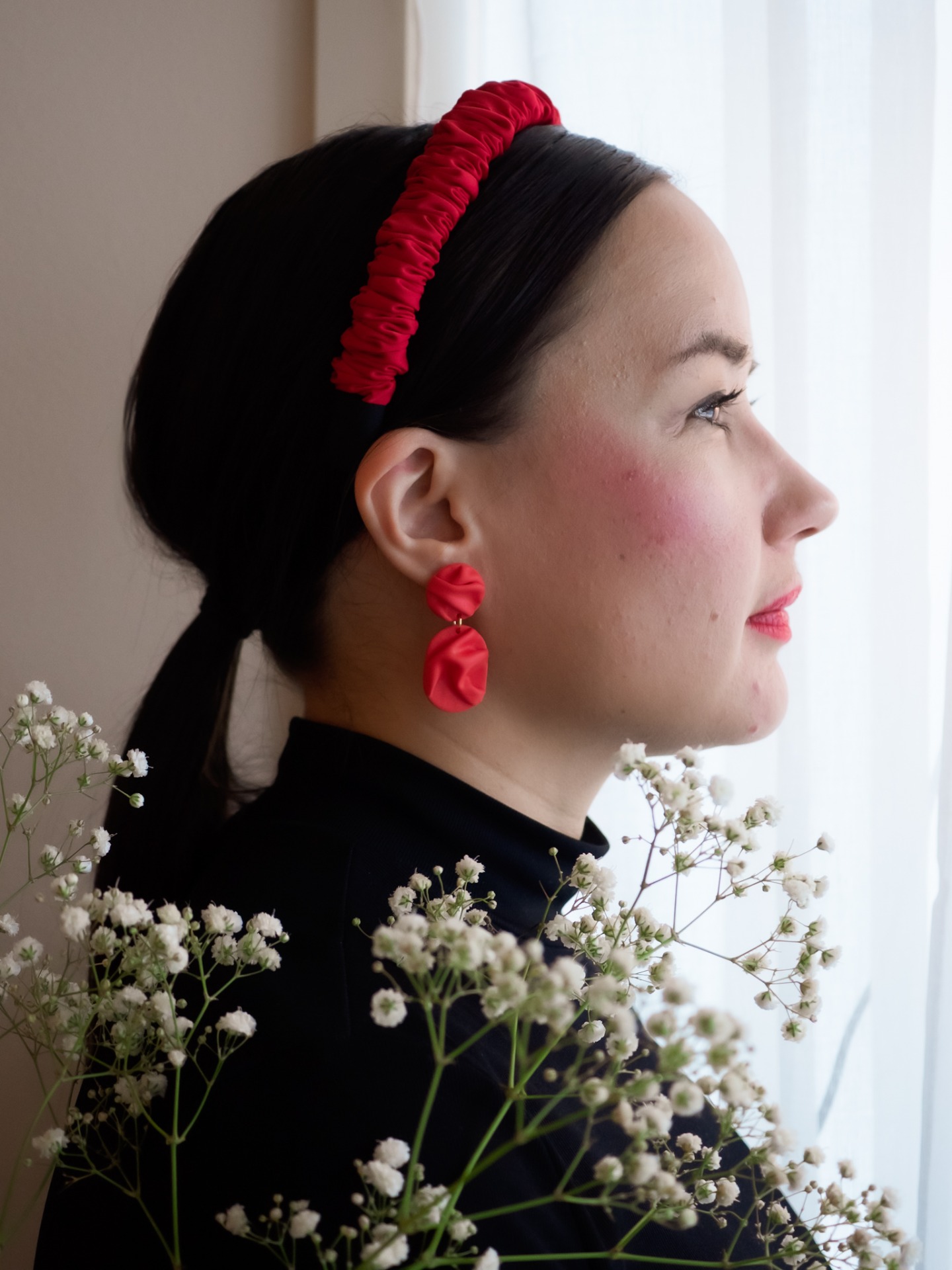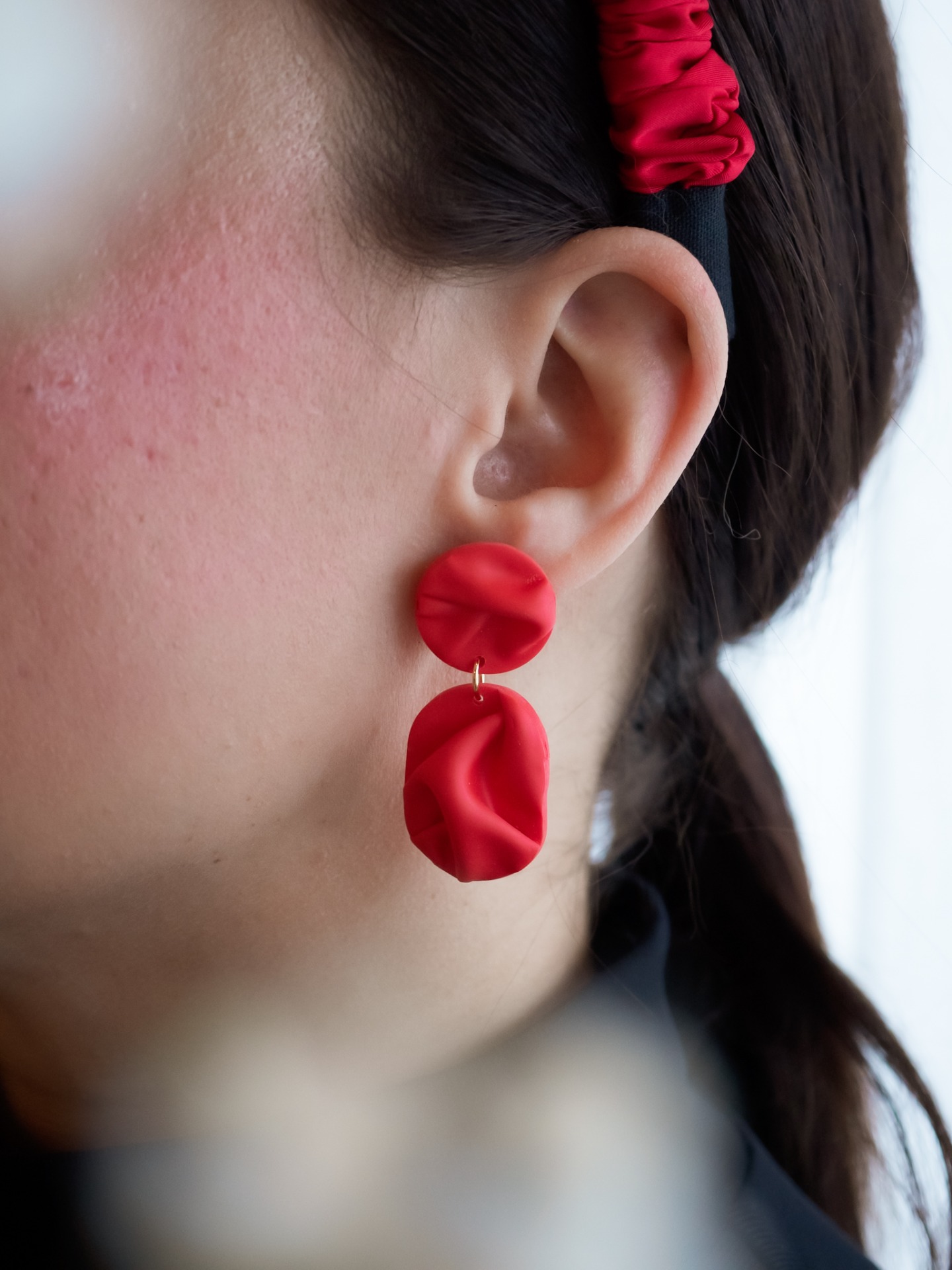Polymeerisavesta valmistetut korvakorut tappikiinnityksellä. Ihon kanssa kosketuksiin tulevat koruosat nikkelivapaata kirurginterästä.