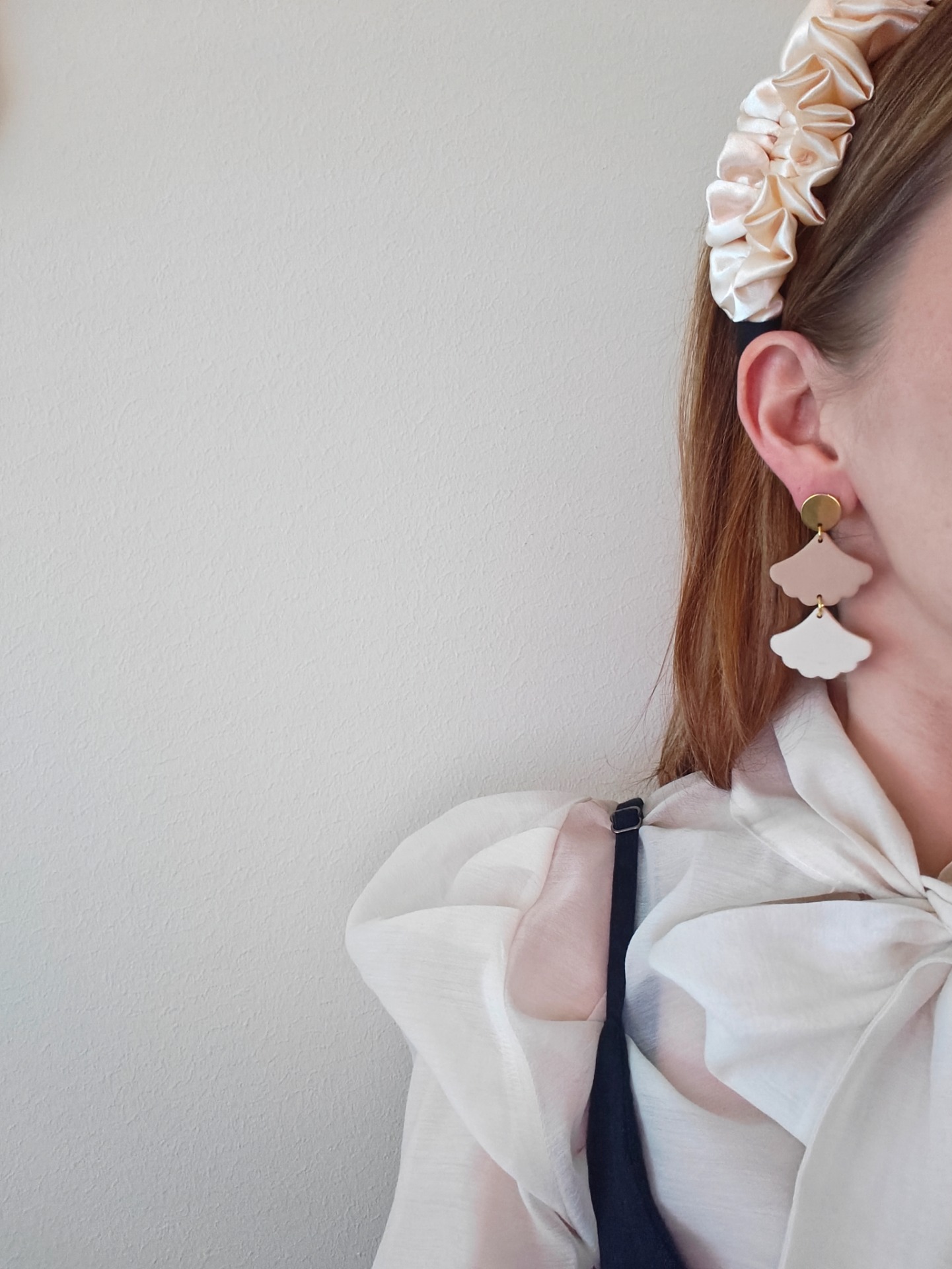 Polymeerisavesta käsityönä valmistetut korvakorut tappikiinnityksellä. Ihon kanssa kosketuksiin tulevat koruosat nikkelivapaata kirurginterästä.