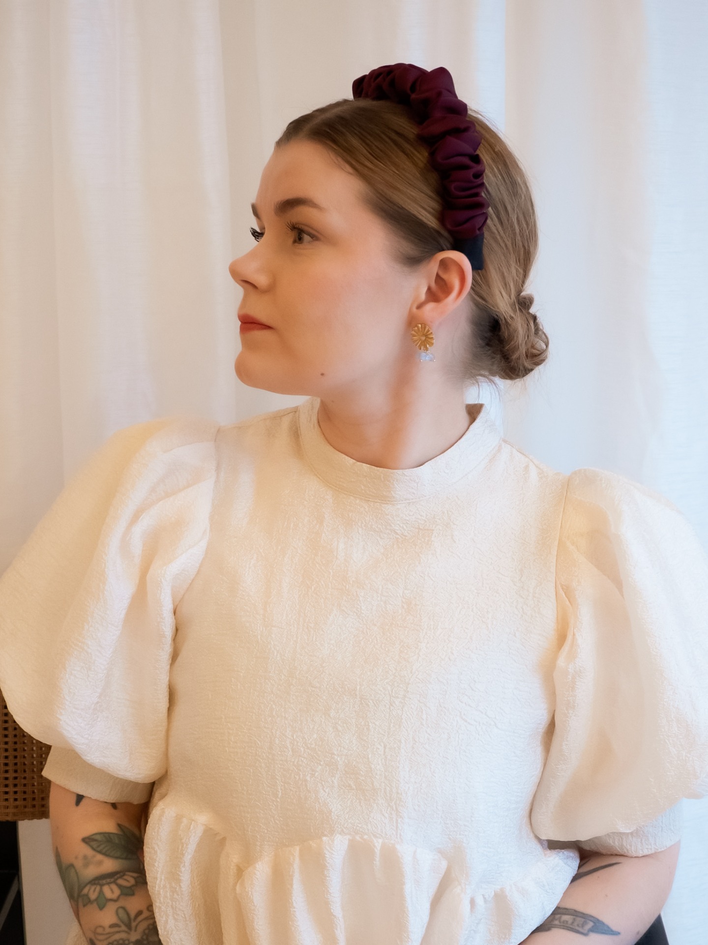 Tämä ylellisestä, kauniisti laskostuvasta kankaasta käsityönä valmistettu hiuspanta kääntää takuulla katseita. Huonon hiuspäivän pelastaminen ei ole koskaan ollut näin helppoa!