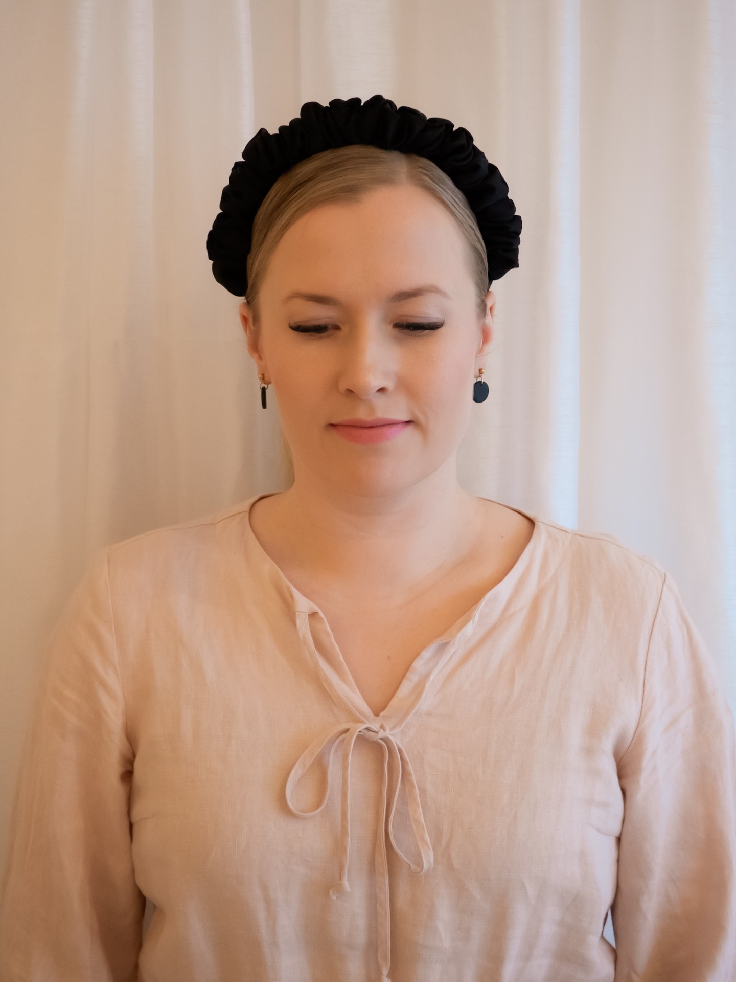 Tämä ylellisestä, kauniisti laskostuvasta kankaasta käsityönä valmistettu hiuspanta kääntää takuulla katseita. Huonon hiuspäivän pelastaminen ei ole koskaan ollut näin helppoa!
