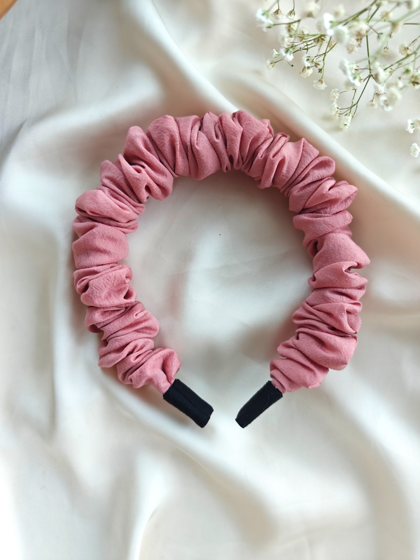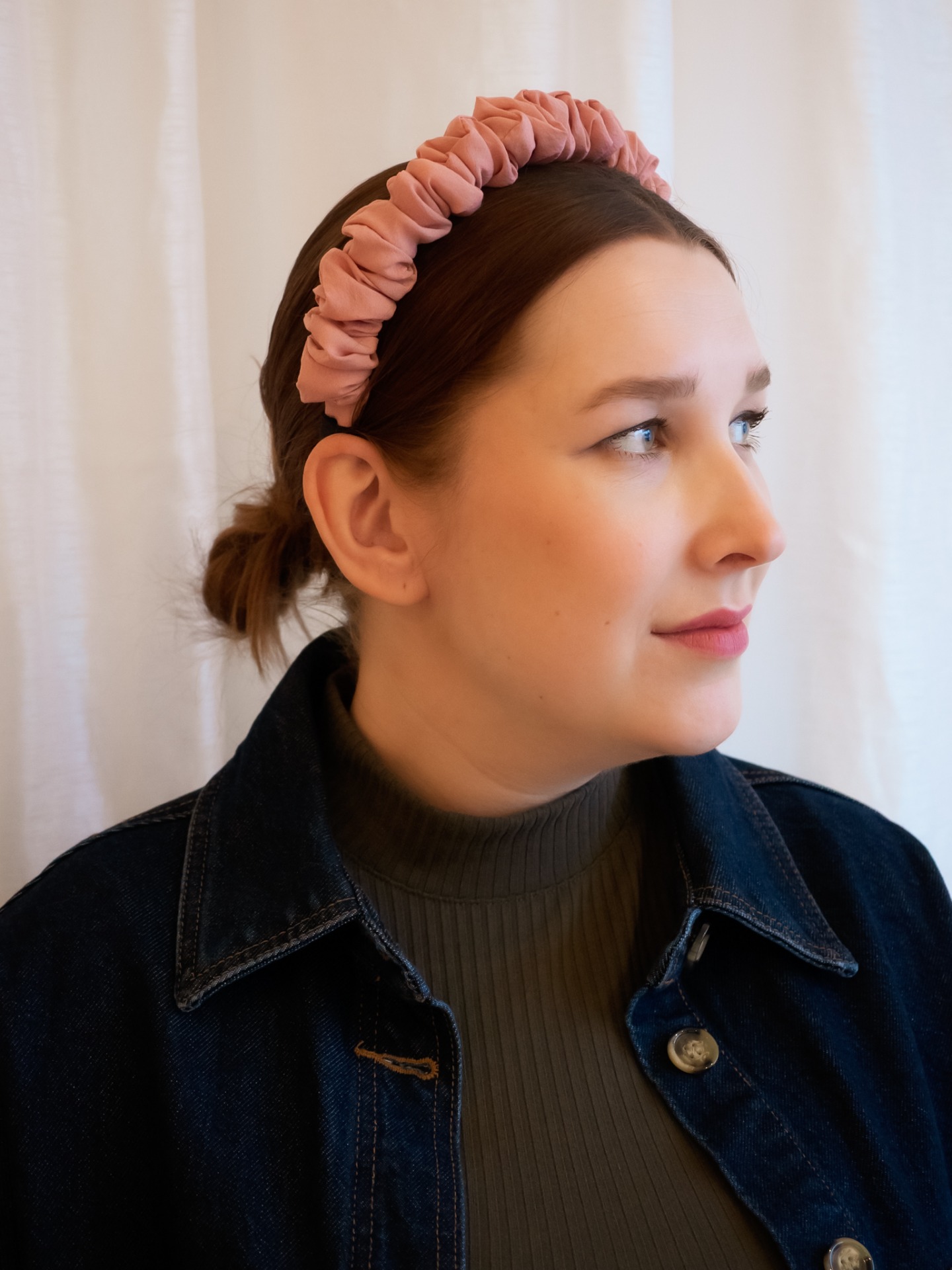 Tämä ylellisestä, kauniisti laskostuvasta kankaasta käsityönä valmistettu hiuspanta kääntää takuulla katseita. Huonon hiuspäivän pelastaminen ei ole koskaan ollut näin helppoa!