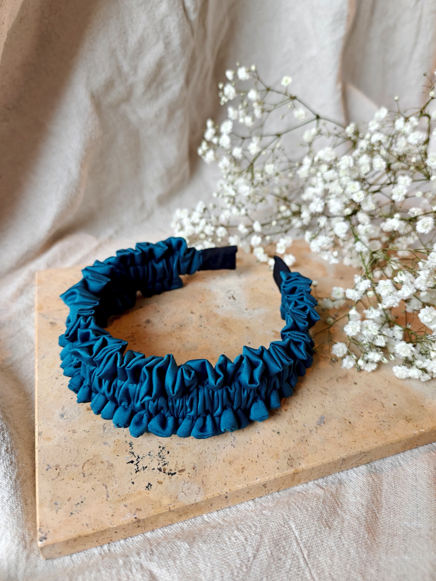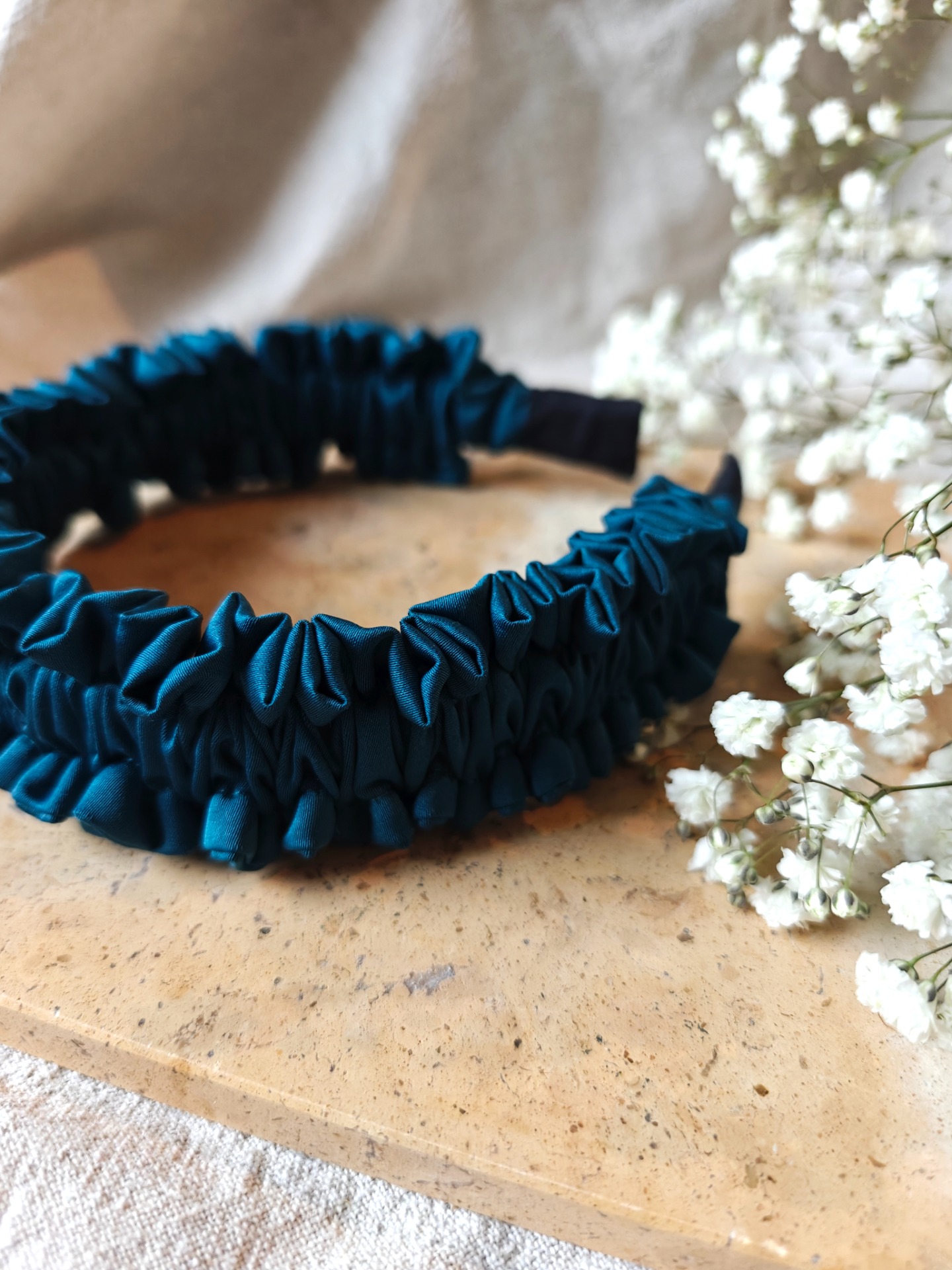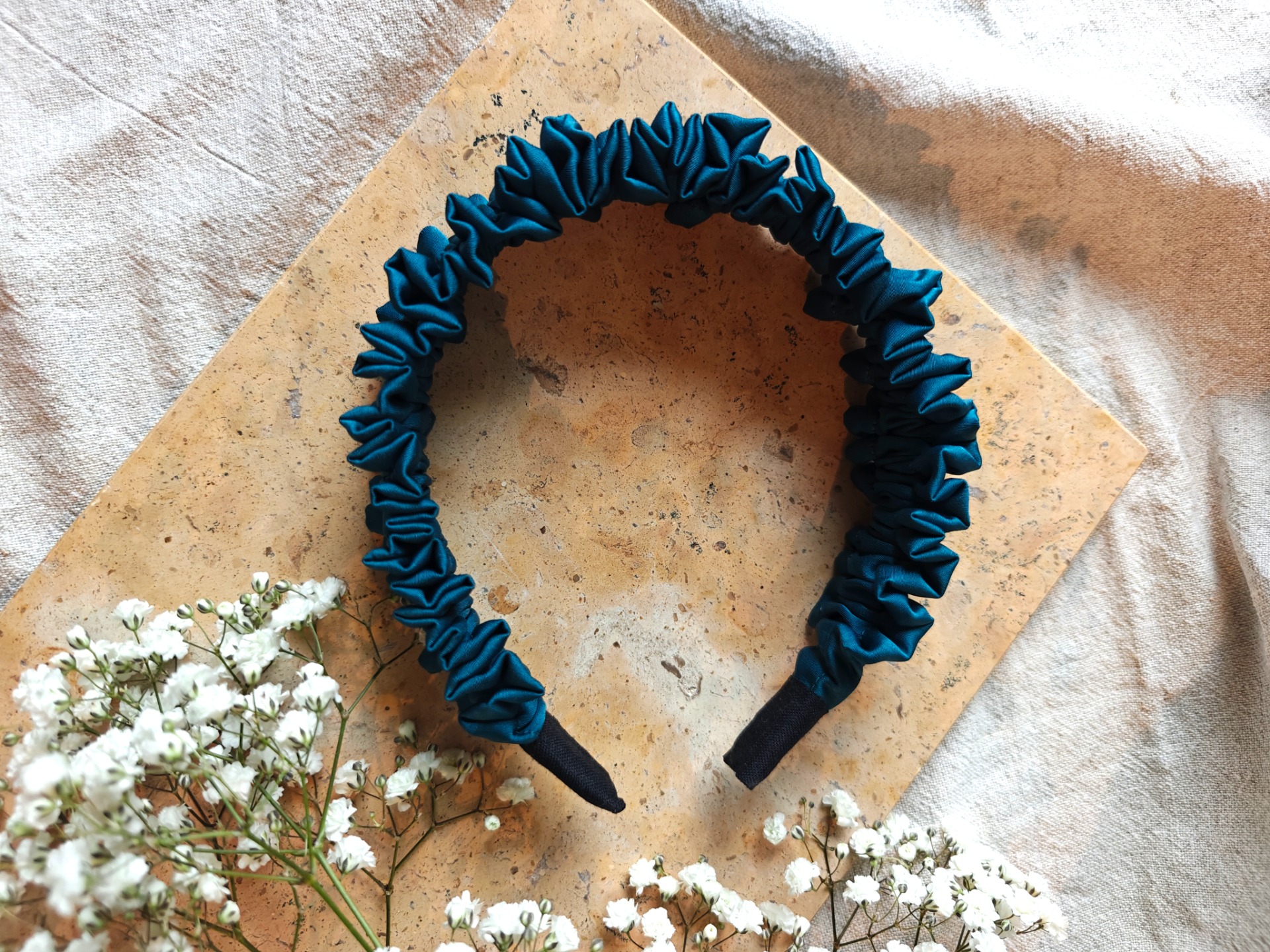 Tämä ylellisestä, kauniisti laskostuvasta kankaasta käsityönä valmistettu hiuspanta kääntää takuulla katseita. Huonon hiuspäivän pelastaminen ei ole koskaan ollut näin helppoa!