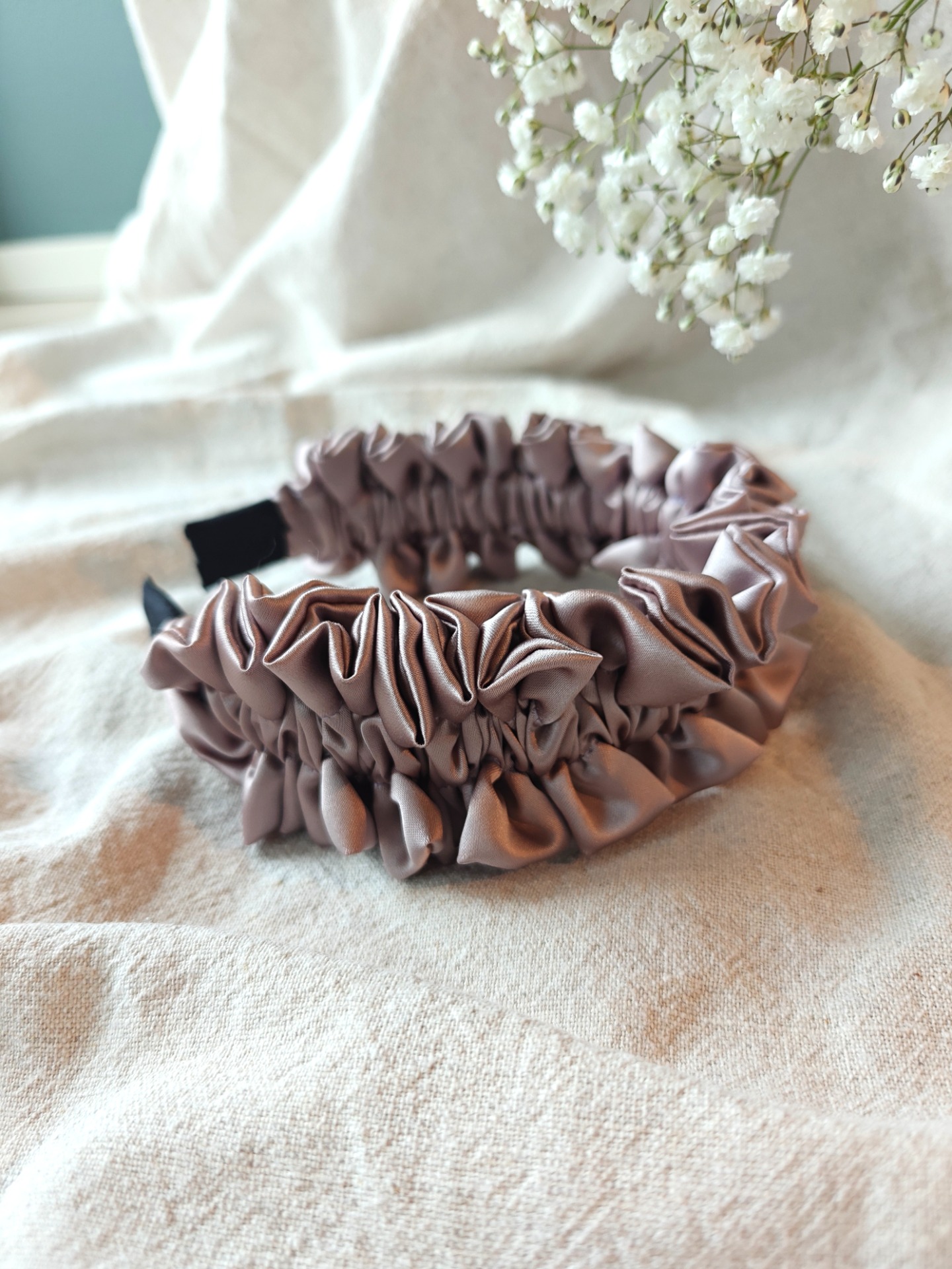 Tämä ylellisestä, kauniisti laskostuvasta kankaasta käsityönä valmistettu hiuspanta kääntää takuulla katseita. Huonon hiuspäivän pelastaminen ei ole koskaan ollut näin helppoa!