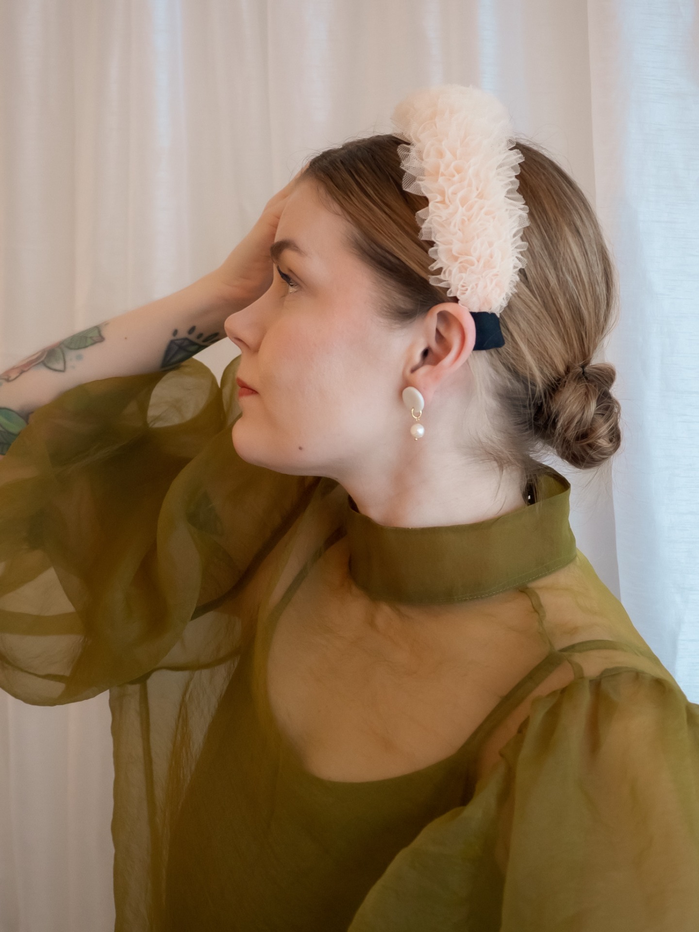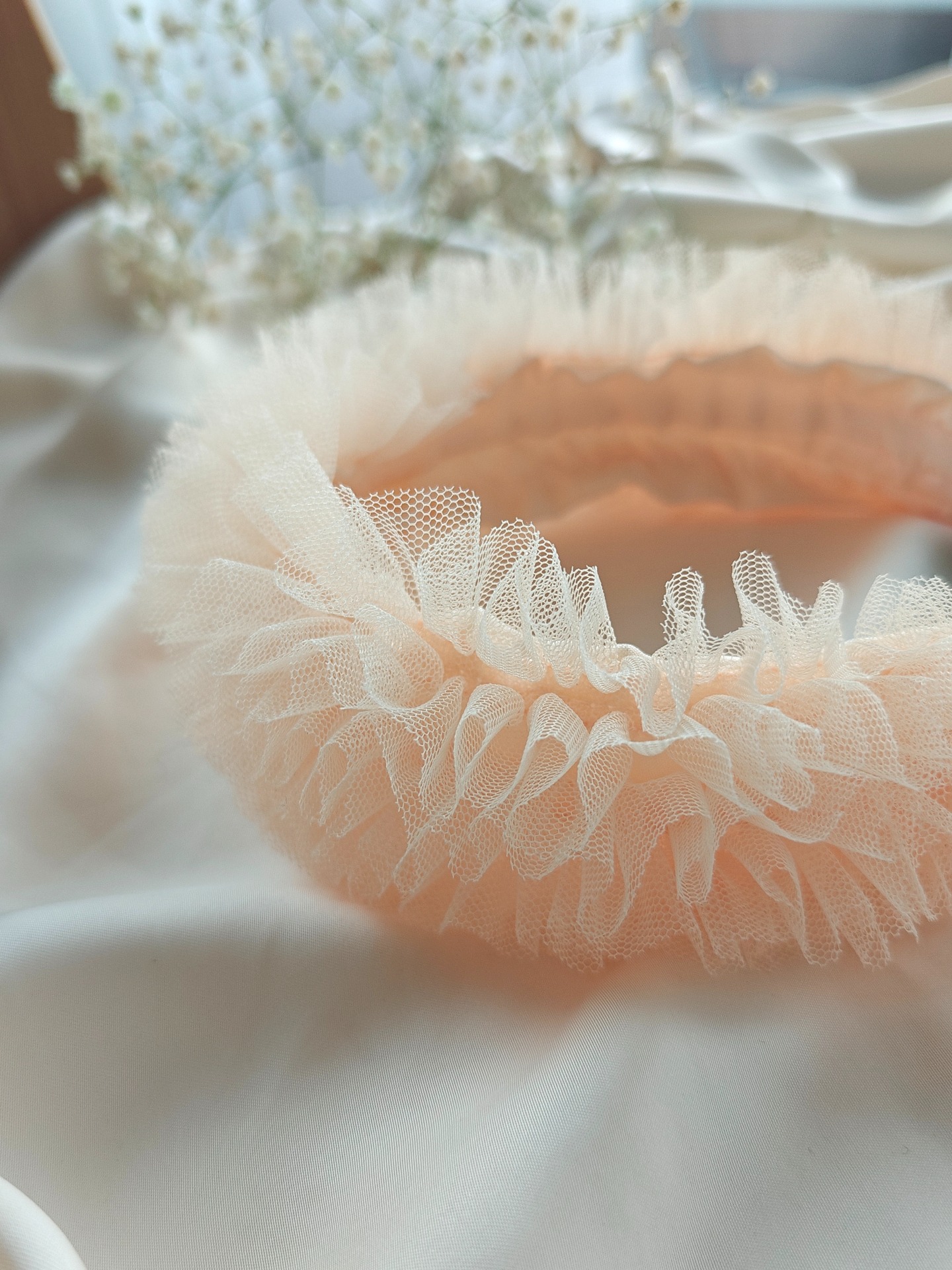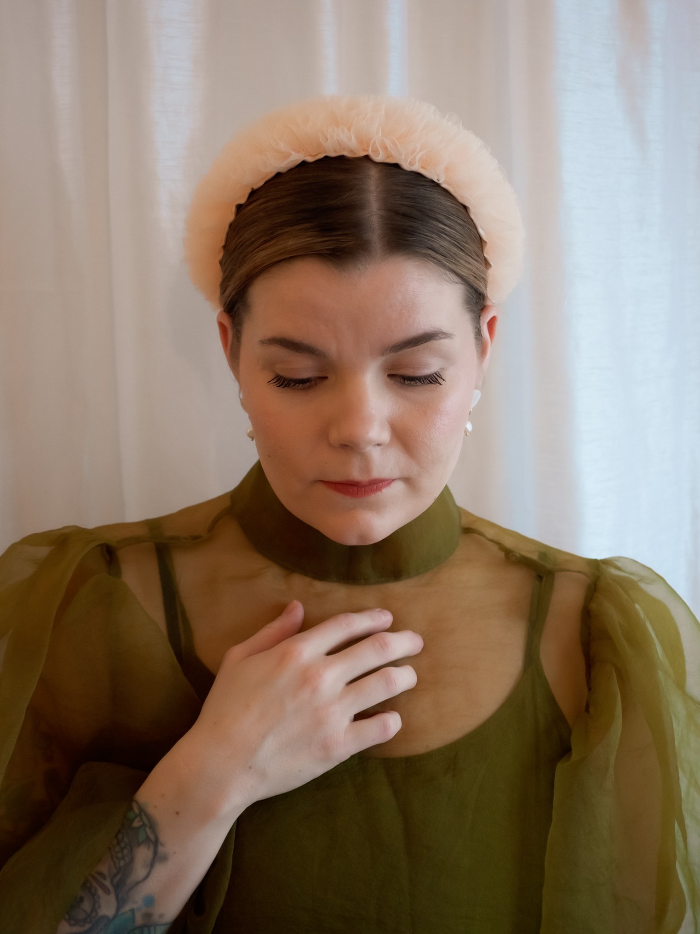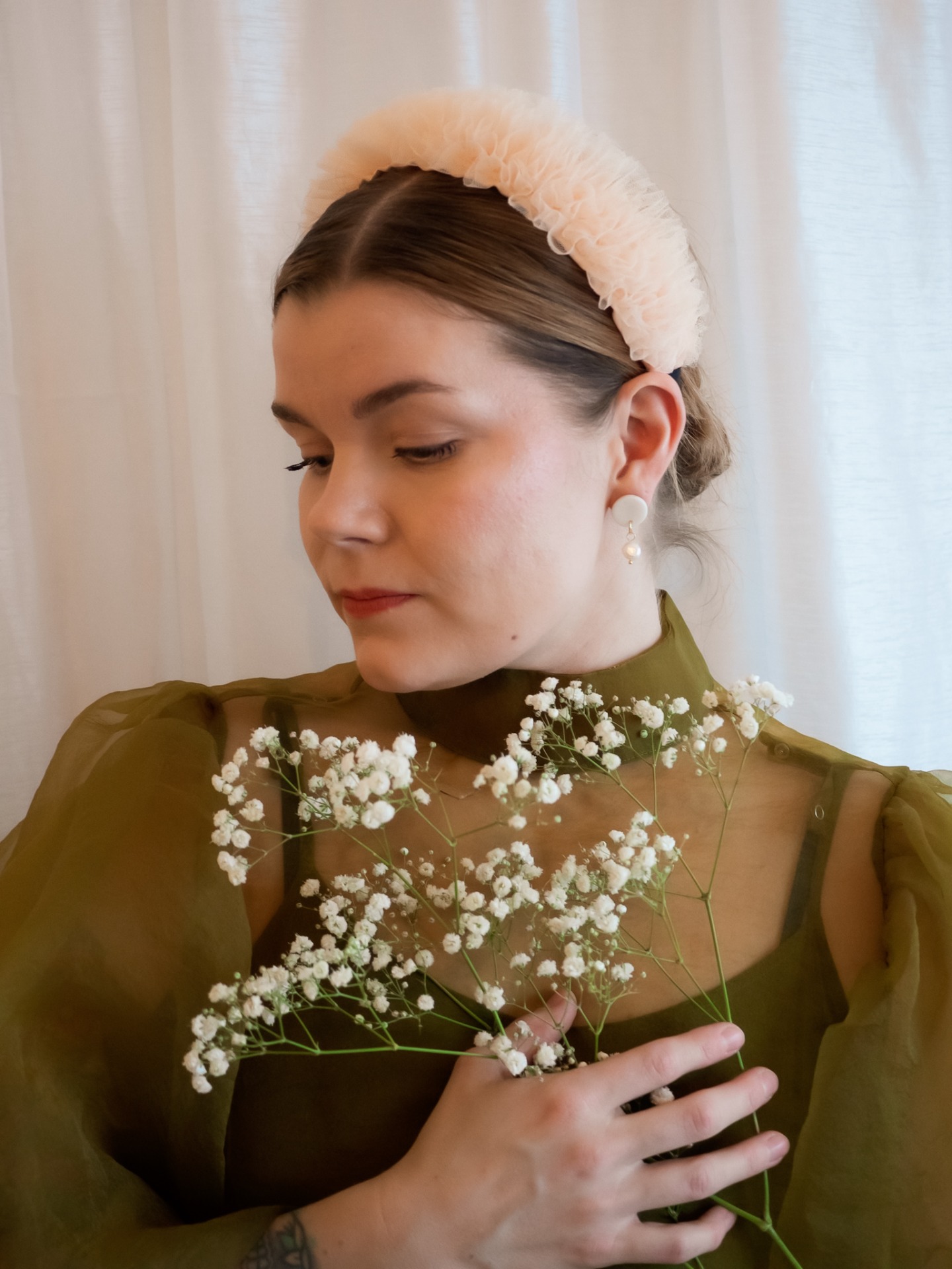 Tämä tyllirunsaus, käsityönä valmistettu hiuspanta kääntää takuulla katseita.