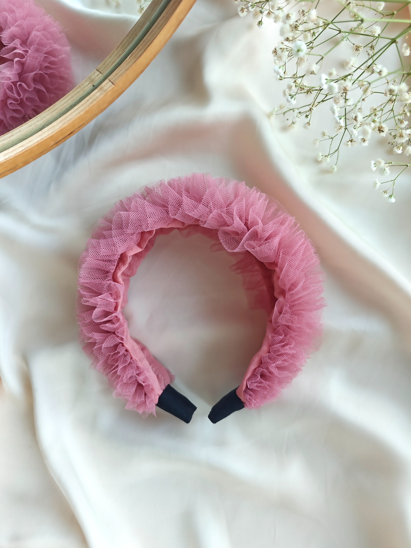 Tämä tyllirunsaus, käsityönä valmistettu hiuspanta kääntää takuulla katseita. Huonon hiuspäivän pelastaminen ei ole koskaan ollut näin helppoa!