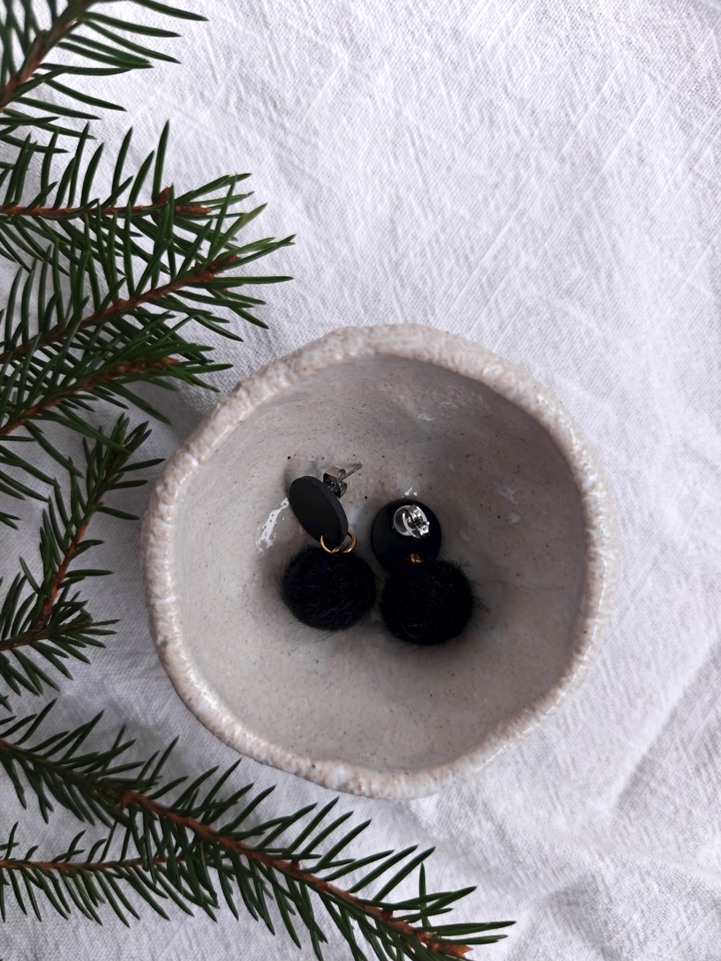 Polymeerisavesta valmistetut korvakorut tappikiinnityksellä. Lävistävät koruosat sekä välirengas nikkelivapaata kirurginterästä.