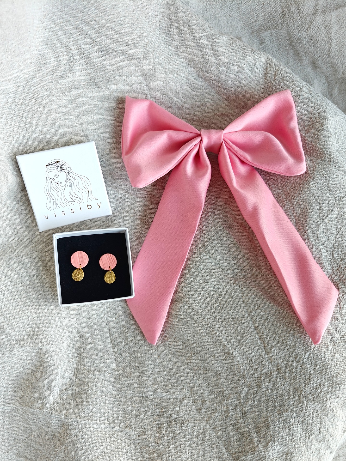 Näyttävä, huolellisesti käsityönä valmistettu rusetti hiuksiin. Klipsikiinnitys.