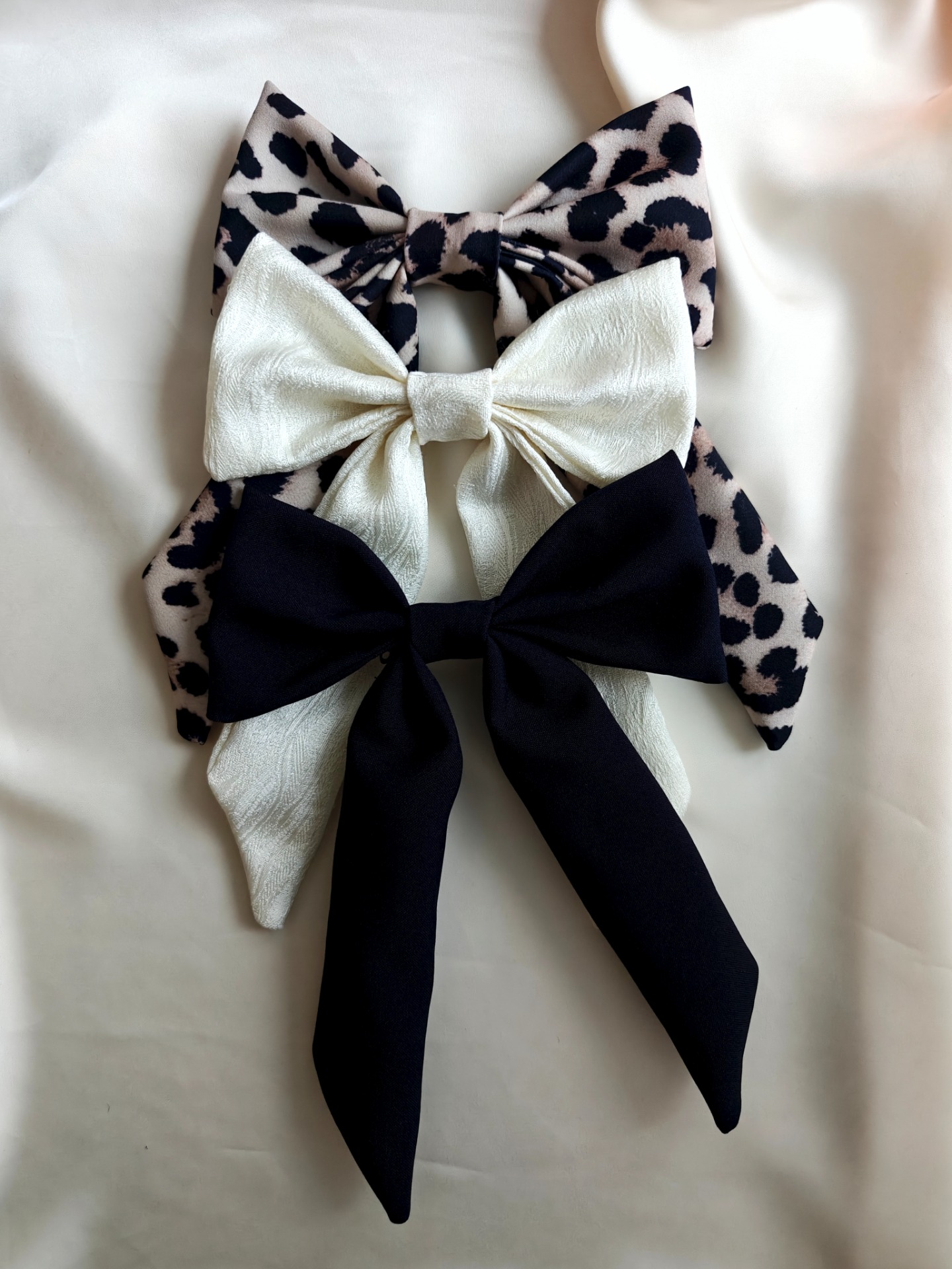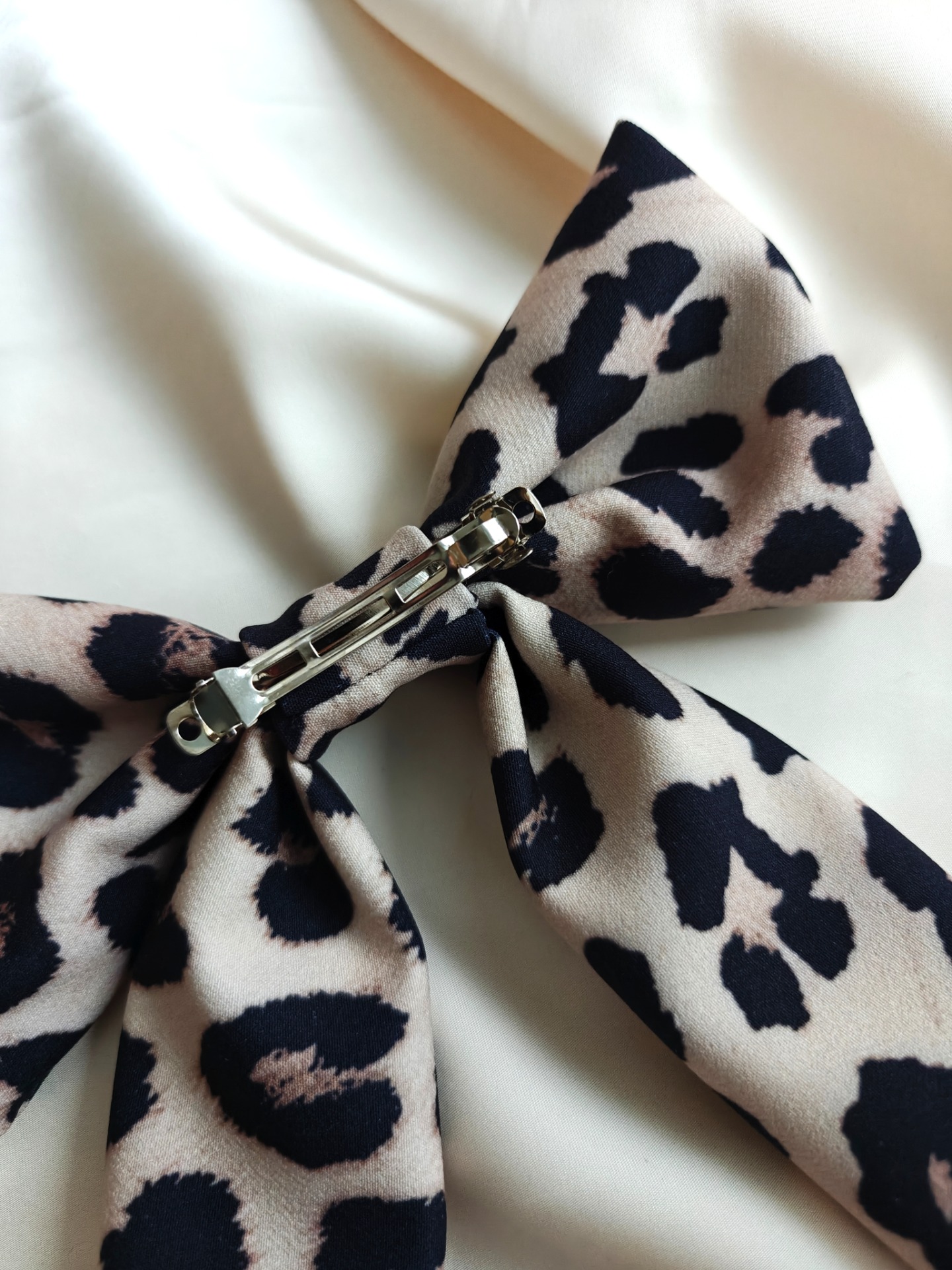 Näyttävä, huolellisesti käsityönä valmistettu rusetti hiuksiin. Klipsikiinnitys.