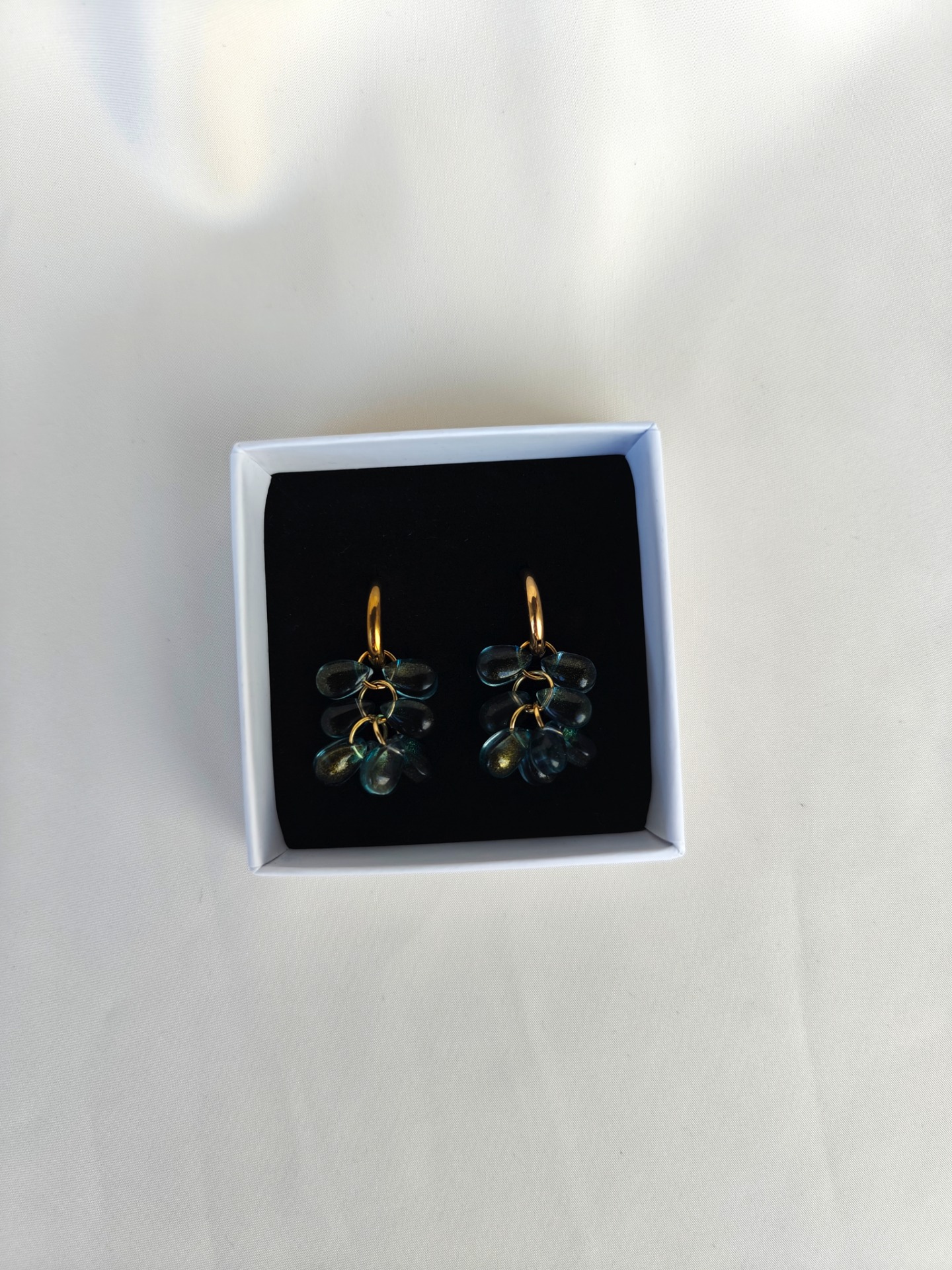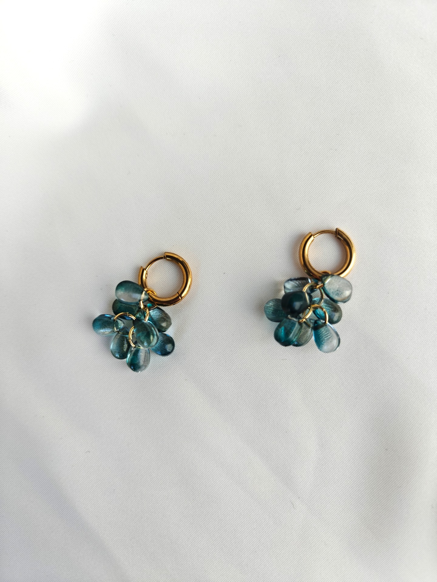 Lävistävä korunosa nikkelivapaata ruostumatonta terästä (kirurginterästä). Riipuksen helmet lasia.