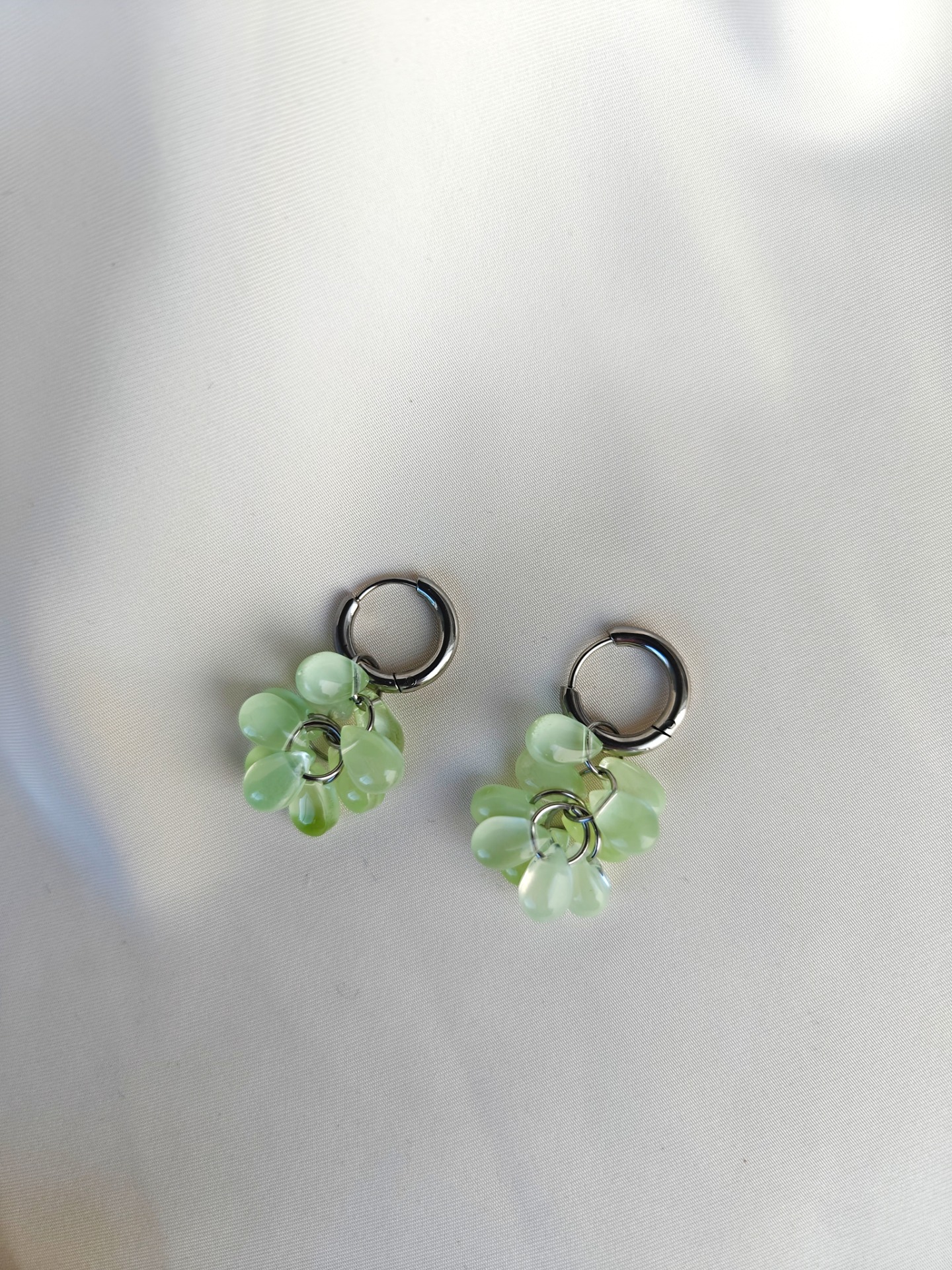 Lävistävä korunosa nikkelivapaata ruostumatonta terästä (kirurginterästä). Riipuksen helmet lasia.