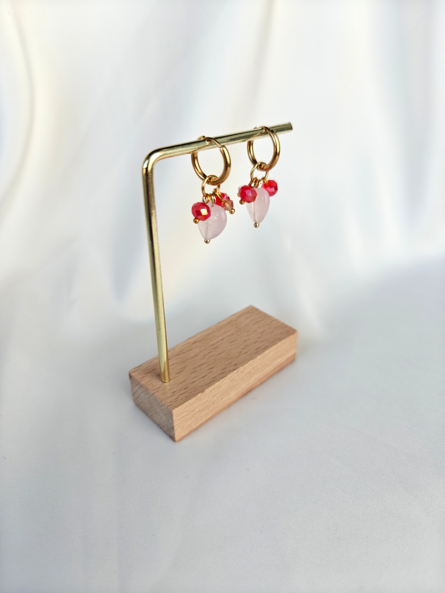 Lävistävä korunosa nikkelivapaata ruostumatonta terästä (kirurginterästä). Riipuksen helmet lasia.