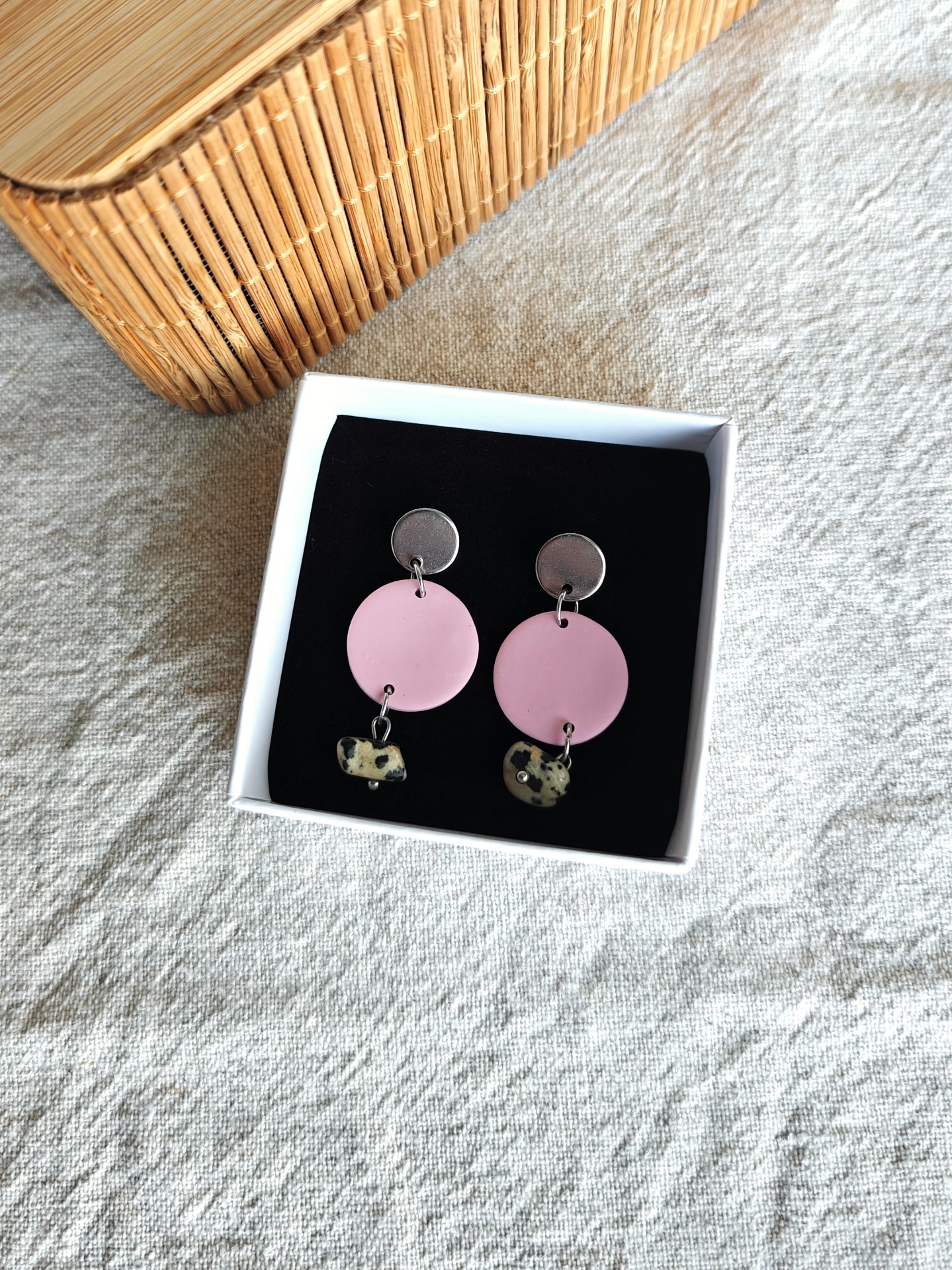Polymeerisavesta valmistetut korvakorut tappikiinnityksellä. Lävistävät koruosat nikkelivapaata kirurginterästä. Toimitetaan taustapahviin kiinnitettynä.