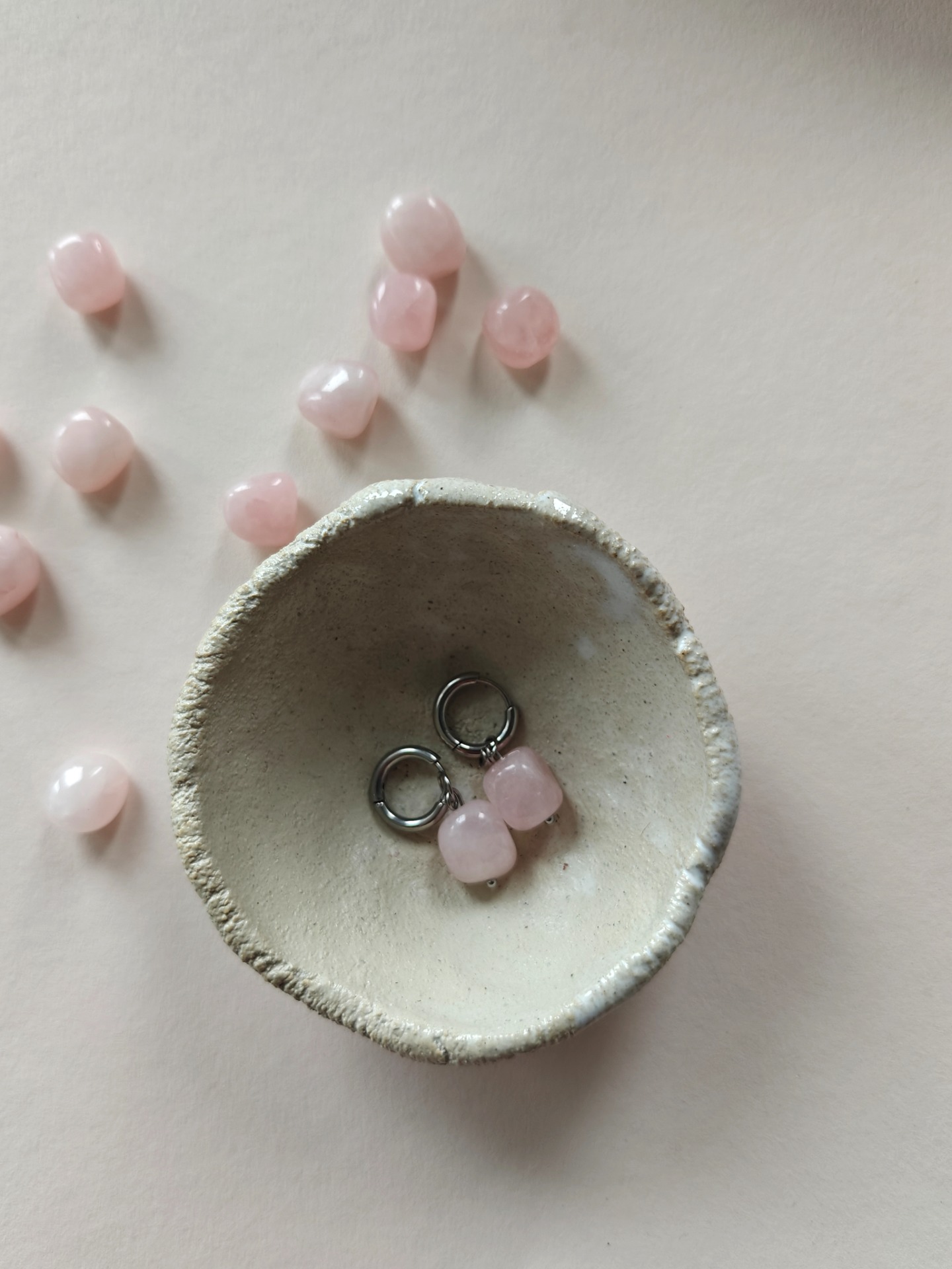 Kaikki metalliset korunosat ovat materiaaliltaan laadukasta nikkelivapaata ruostumatonta terästä (kirurginterästä). Riipuksessa luonnonkivi, ruusukvartsi. Jokainen kivi on muodoltaan uniikki, joten kiven muoto ja koko voi hieman poiketa kuvien yksilöistä.