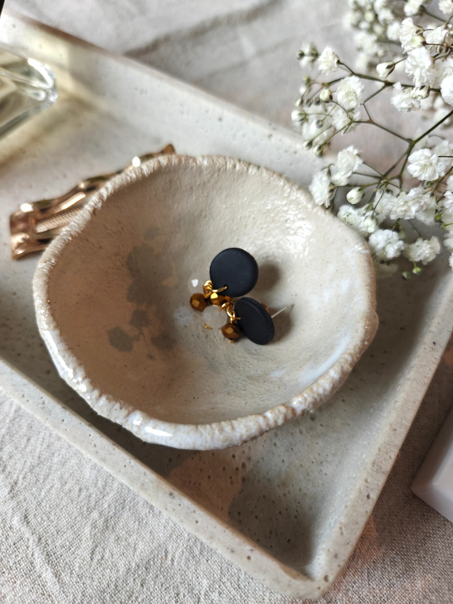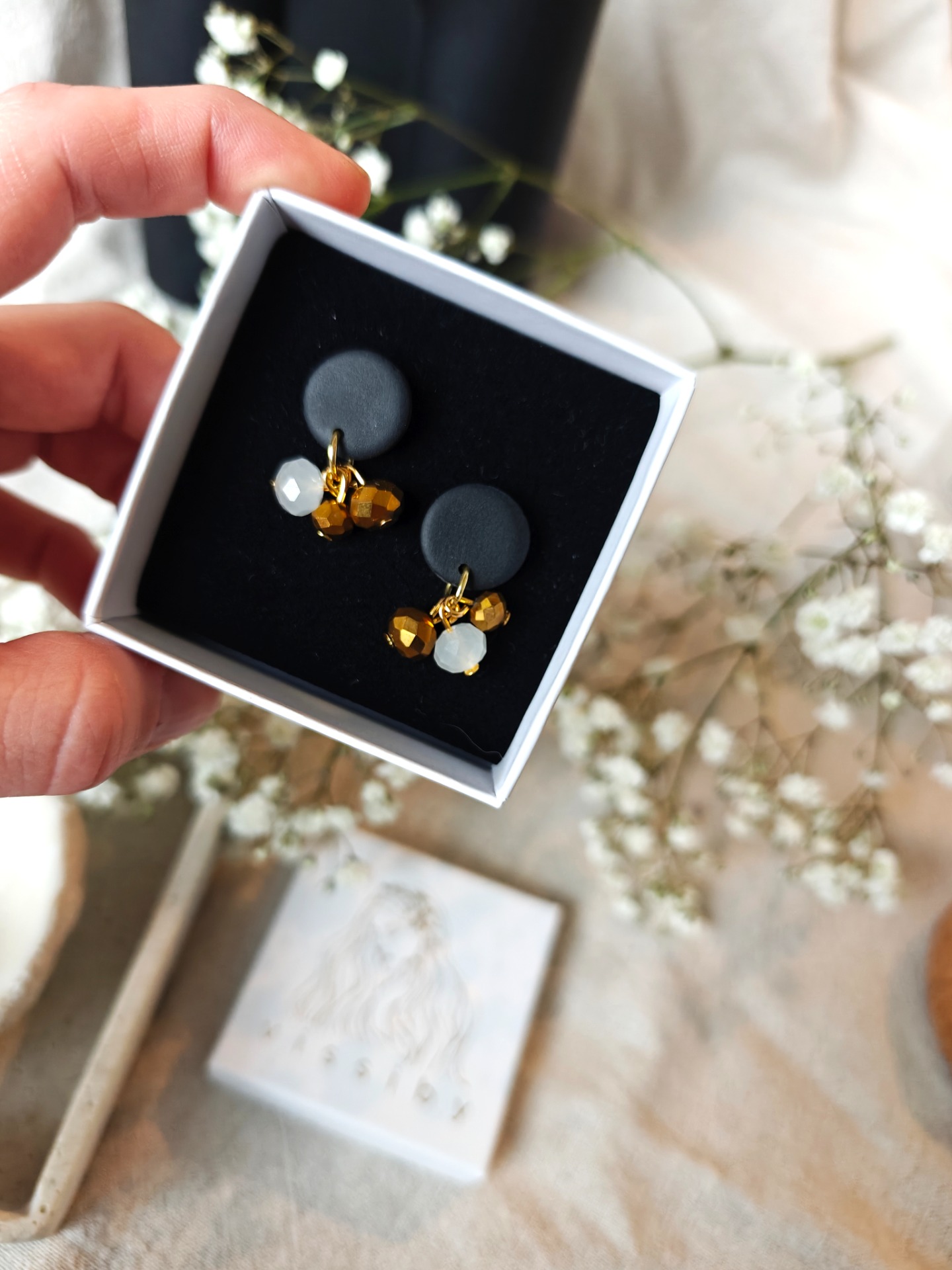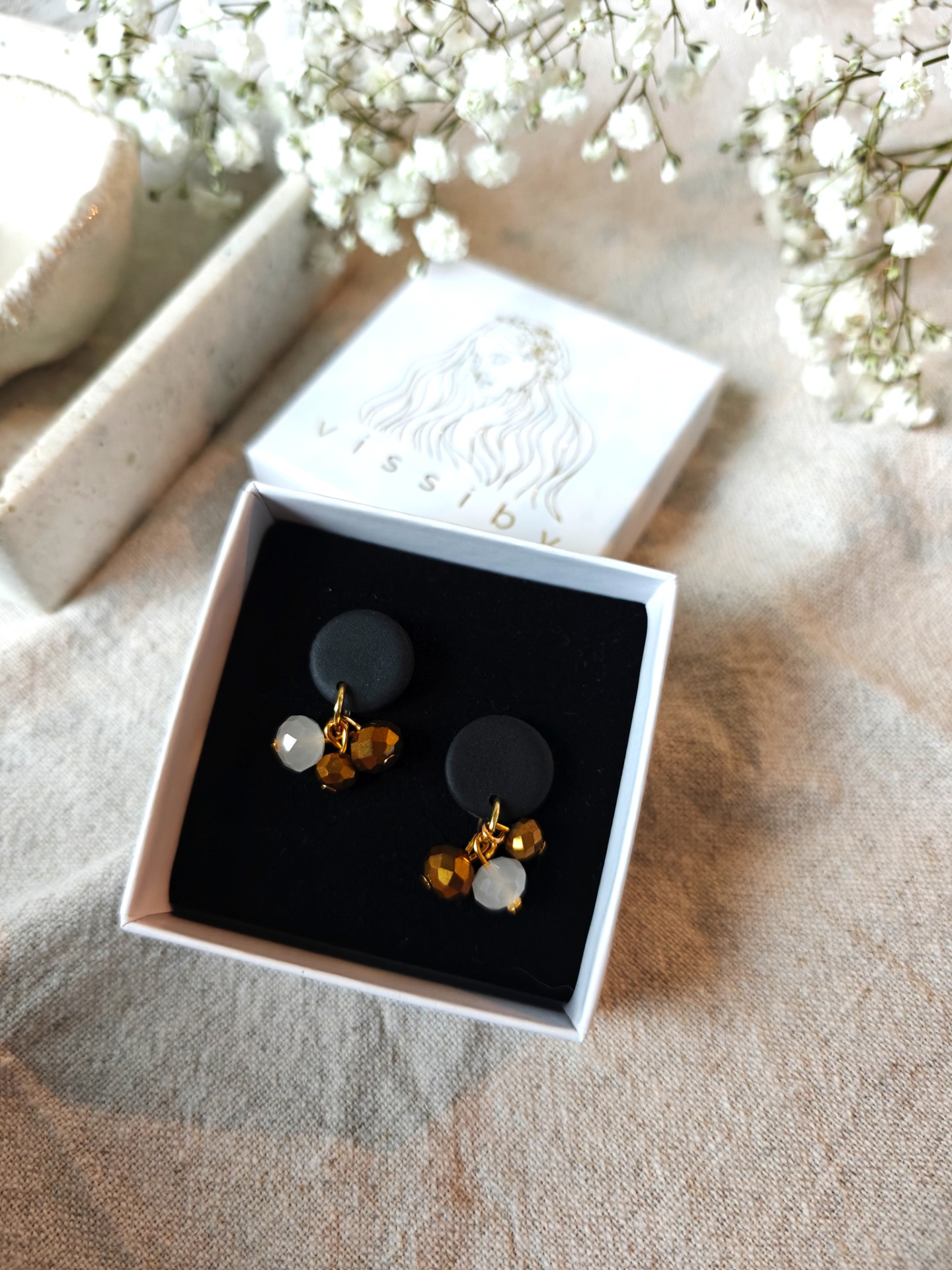 Polymeerisavesta valmistetut korvakorut tappikiinnityksellä. Lävistävät koruosat nikkelivapaata kirurginterästä.