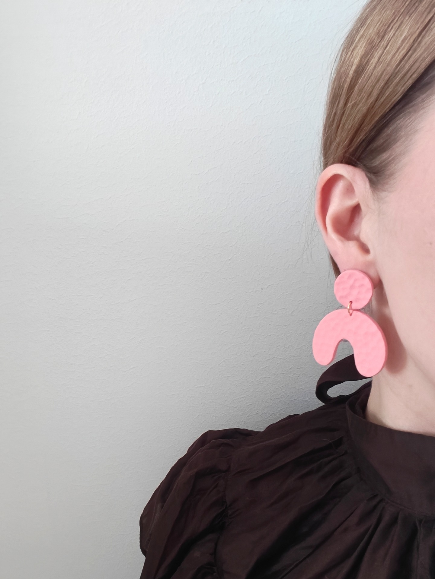 Polymeerisavesta valmistetut korvakorut tappikiinnityksellä. Ihon kanssa kosketuksiin tulevat koruosat nikkelivapaata kirurginterästä.